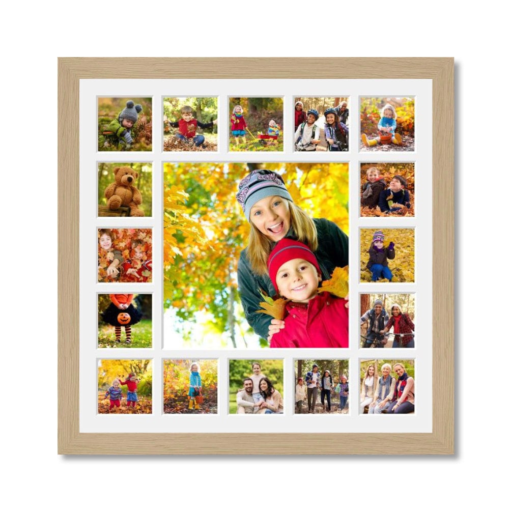 Large Multi-Photo Frame | Holds 52 Square Photos | Oak Veneer Frame