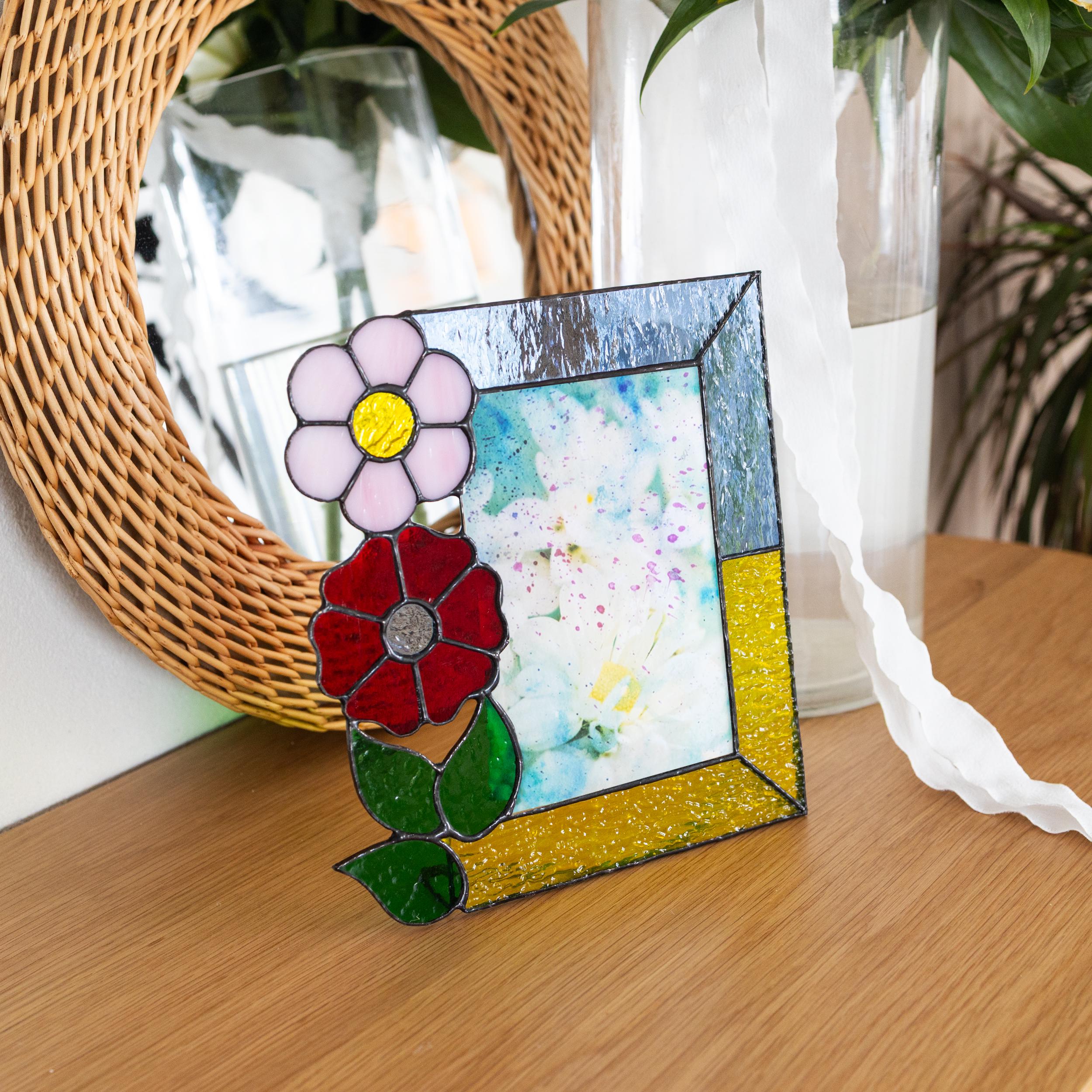 Stained glass photo frame, Stained glass picture frame, Flower phot...