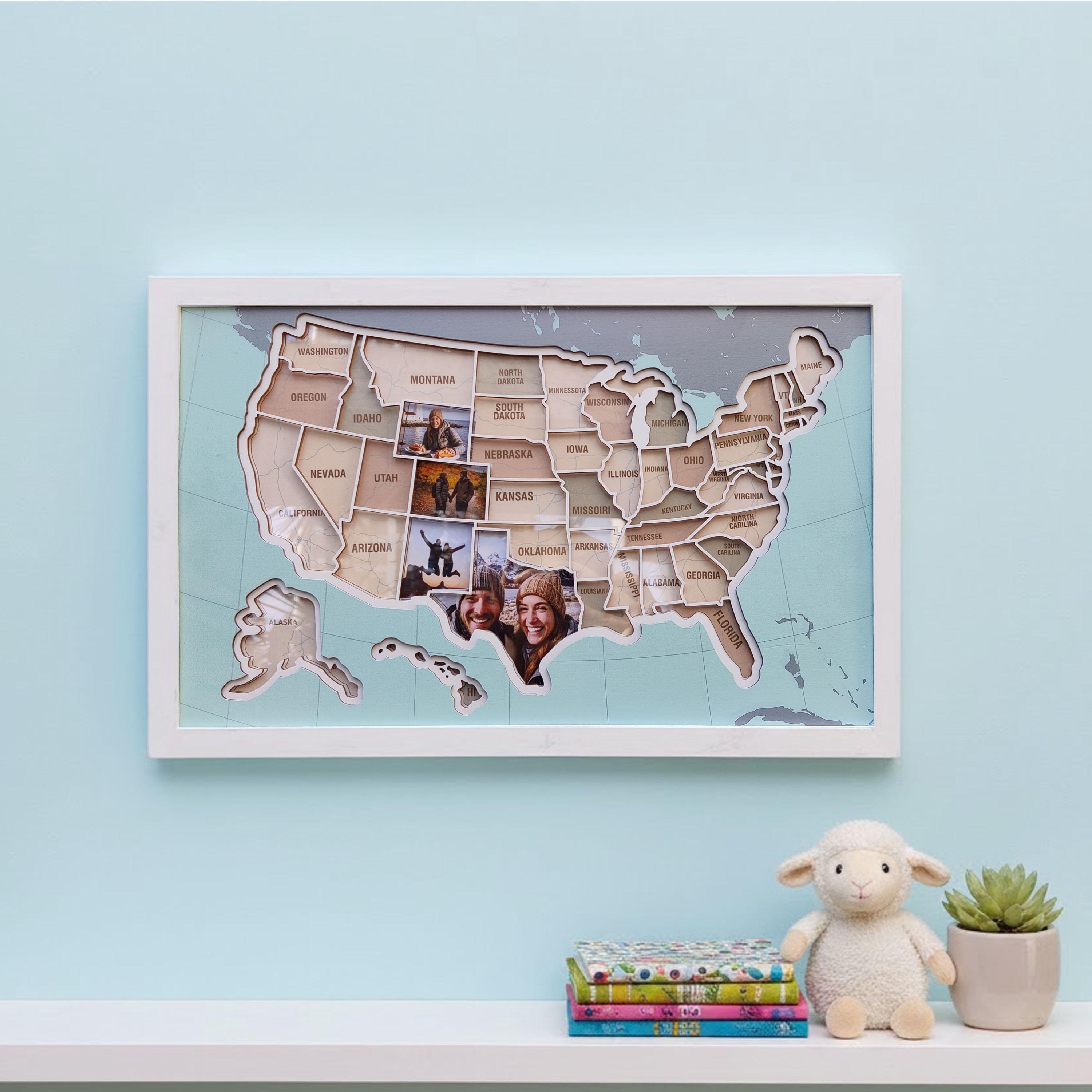 US Photo Map, Personalized Gift for Family, Travel Map USA Photo Co...