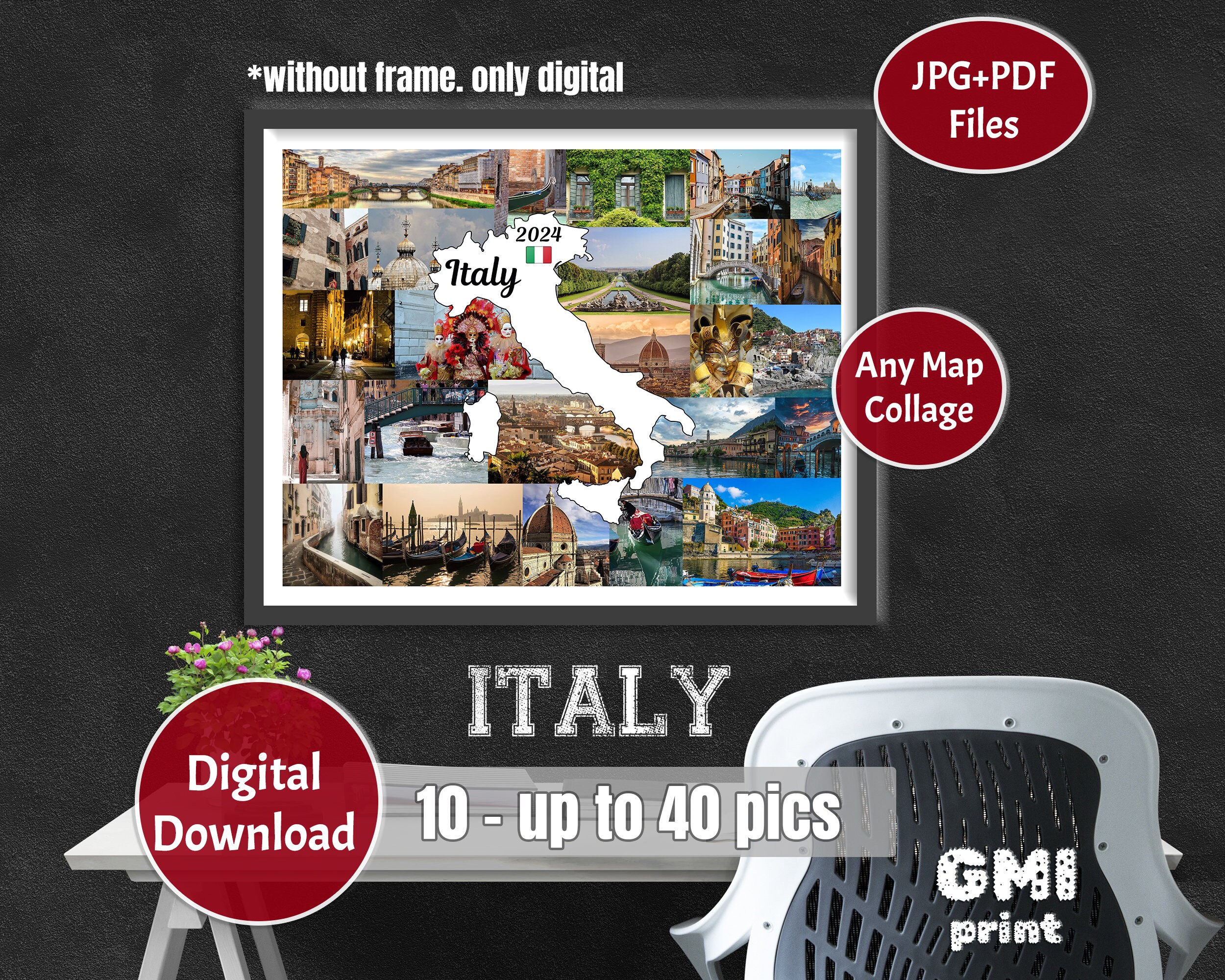 Any Map Photo Collage, Italy MAP Collage, Norway Wall art Gift, Vac...