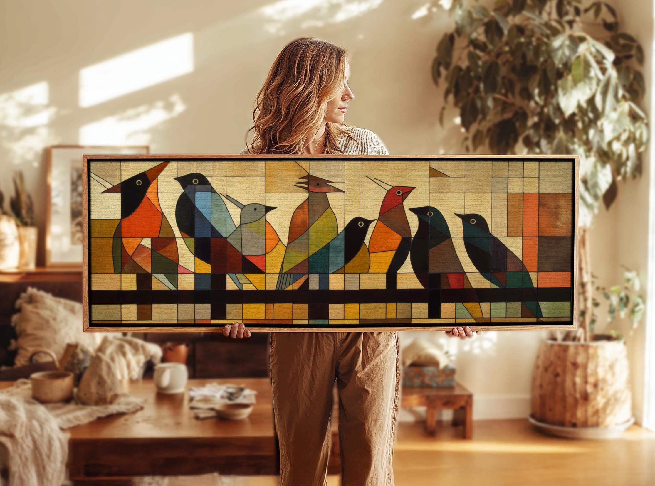 Mid Century Modern Birds on Wire Wall Art Framed, Geometric Modern ...