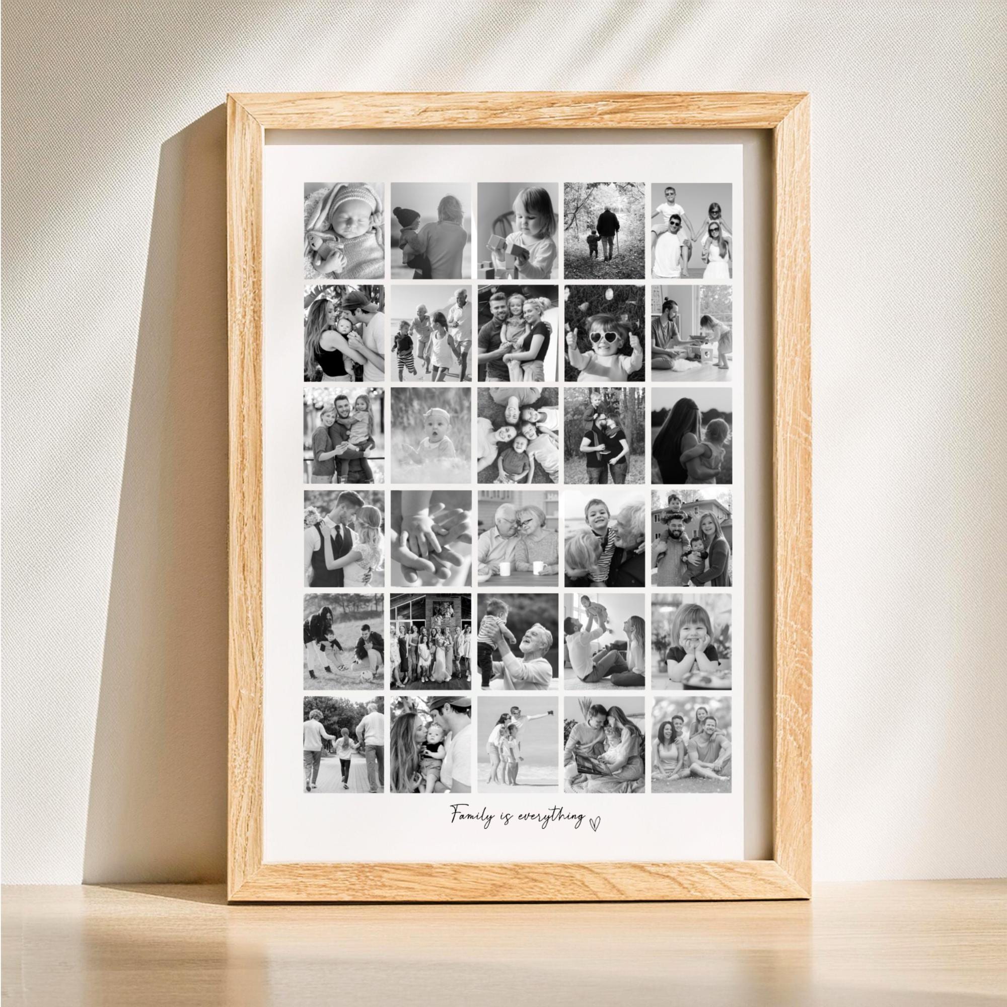 Large Personalised Family 30 Photo Collage, Custom Photo and Frame,...