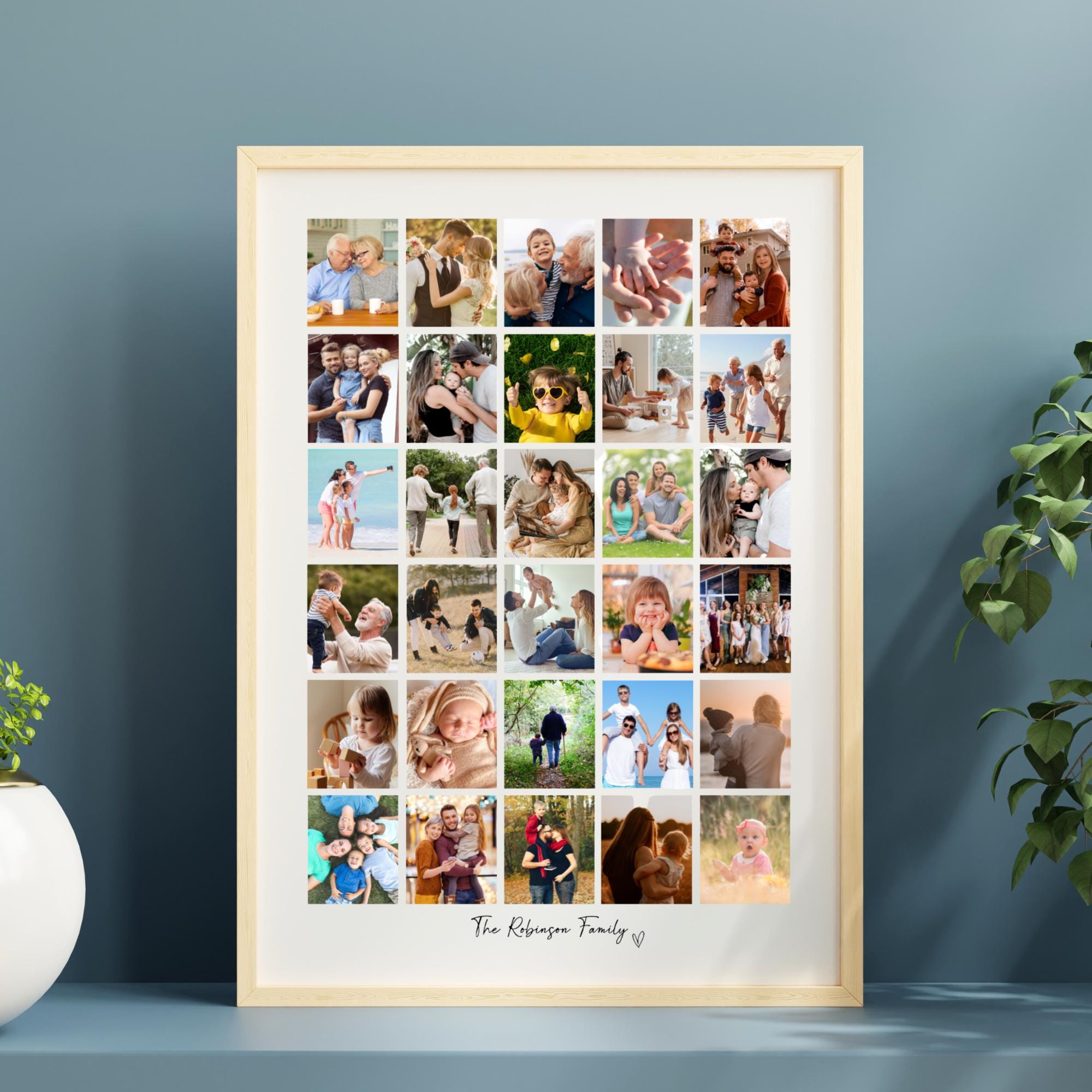 Large Personalised Family 30 Photo Collage, Custom Photo and Frame,...