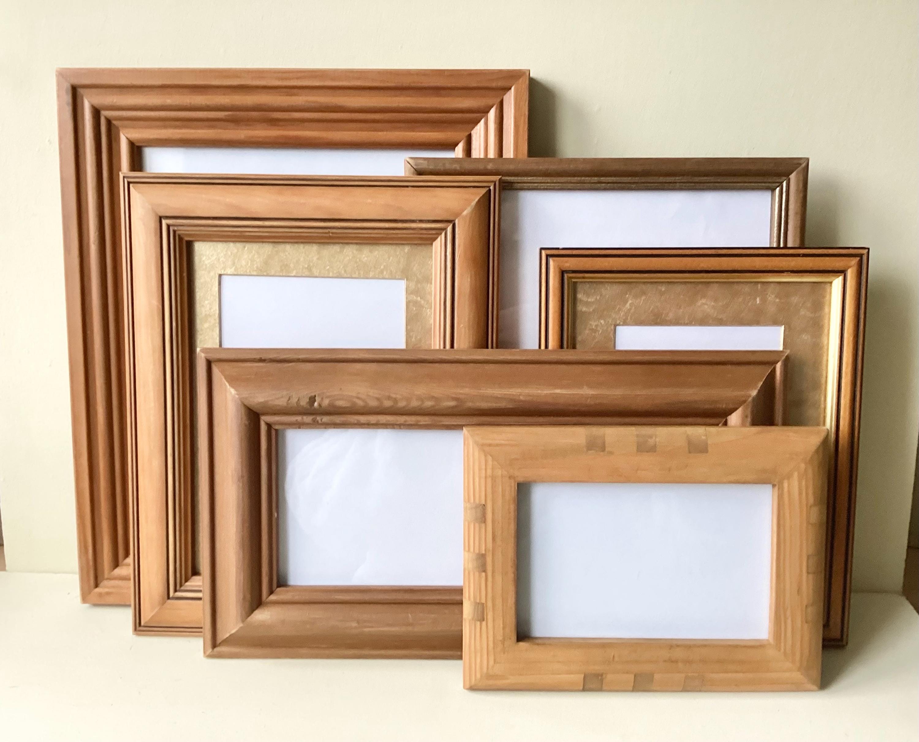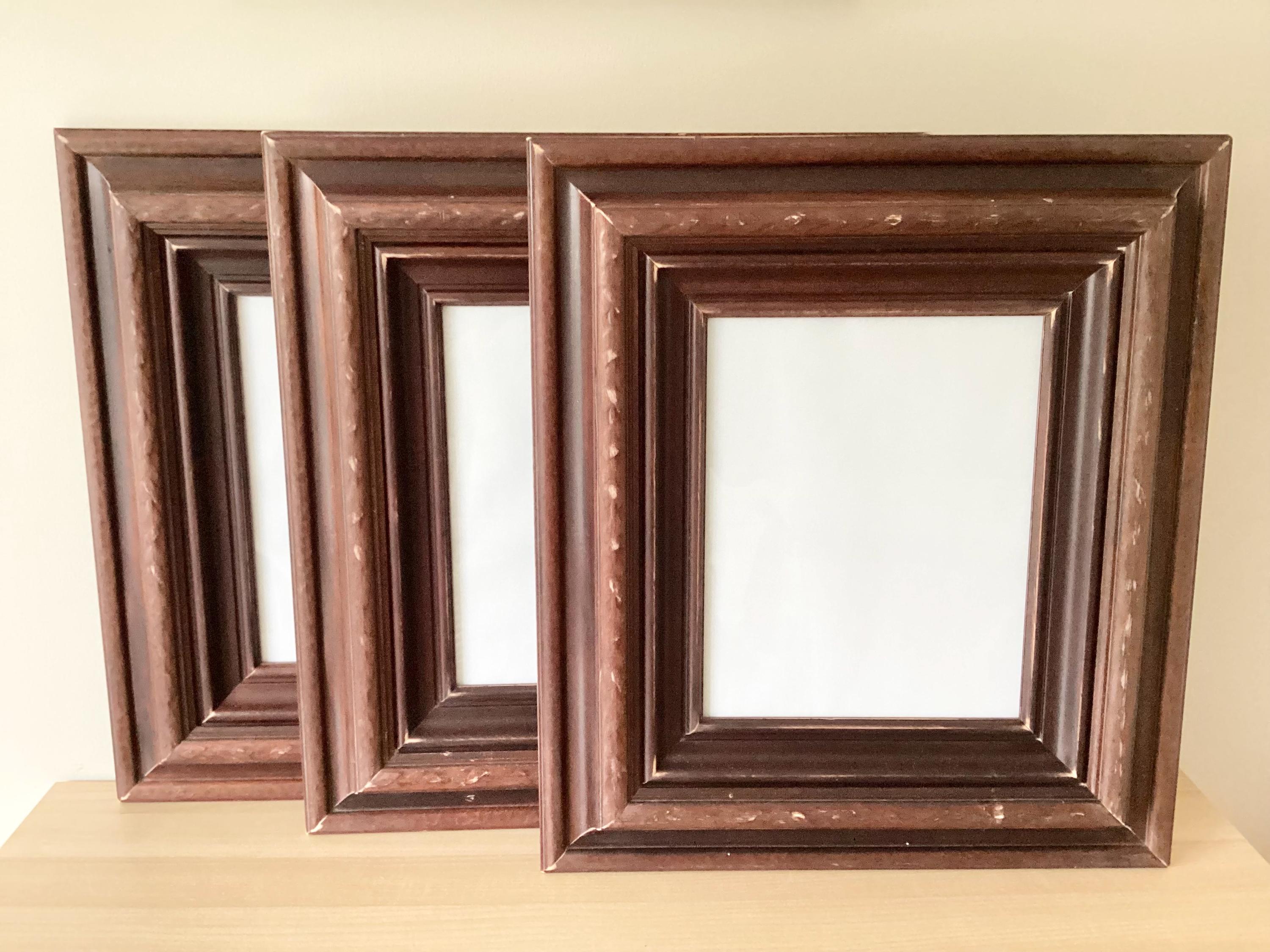 "A set of 3 extra large vintage dark wood picture frames collected along with my other frames t...