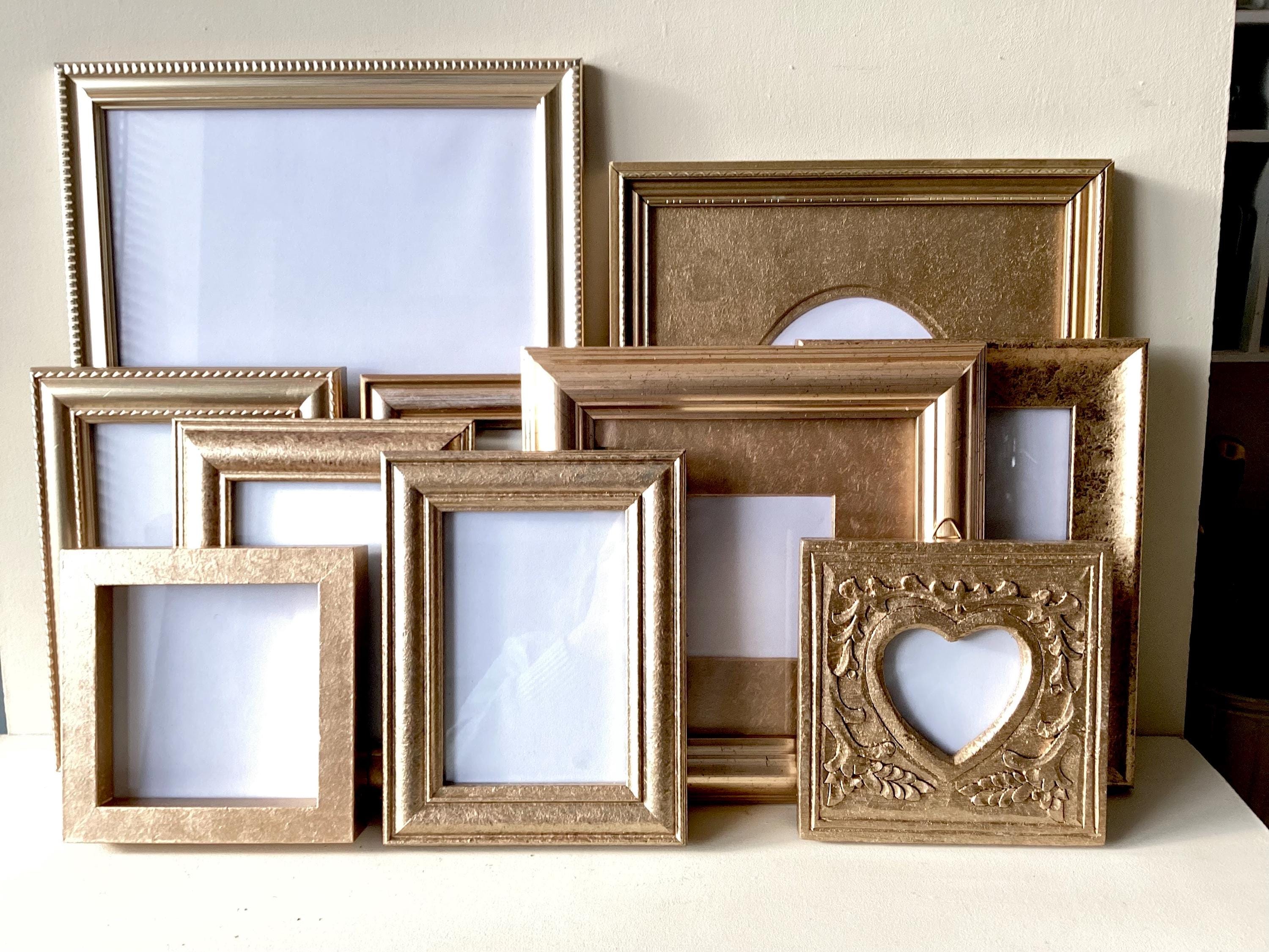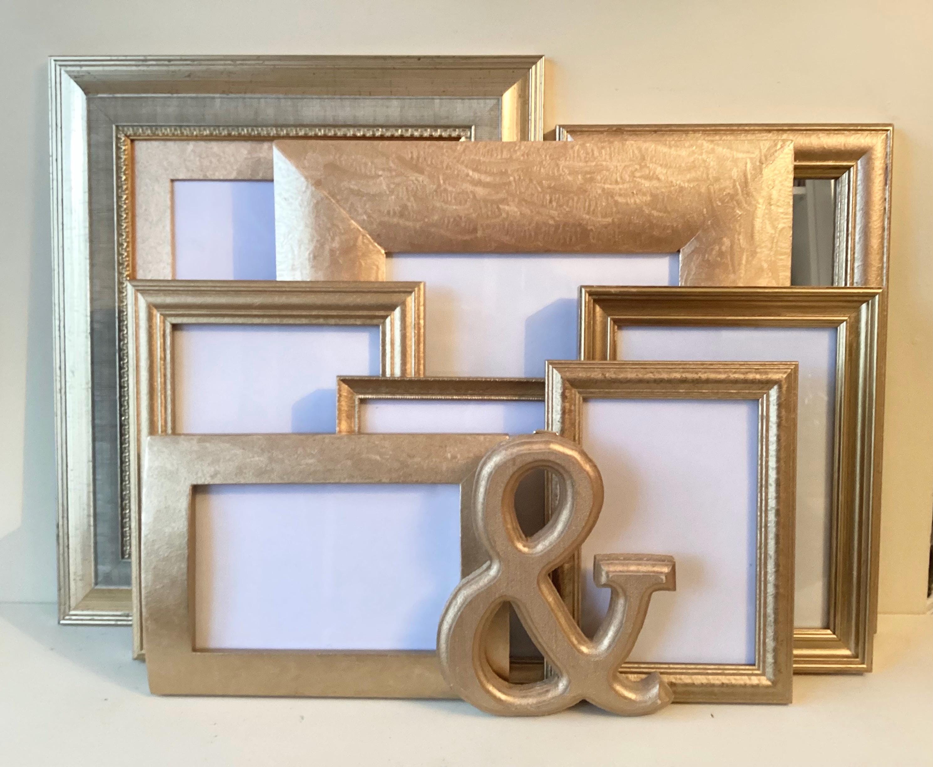 "A set of 7 vintage various gold frames, a mirror and a wooden ampersand collected over time to...