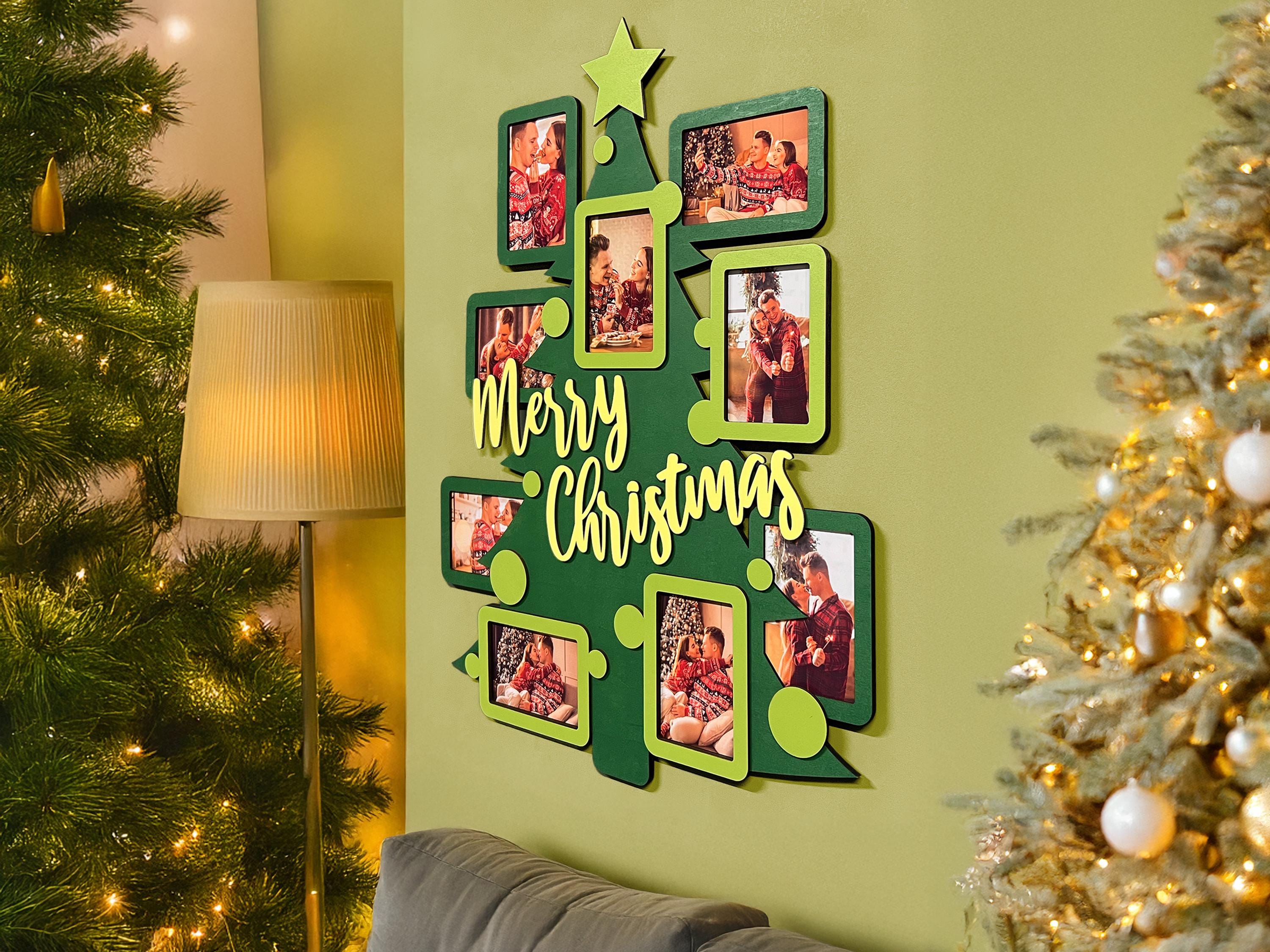 "Wall-mounted Christmas tree picture frame collage First Christmas photo frame collage Multiple...