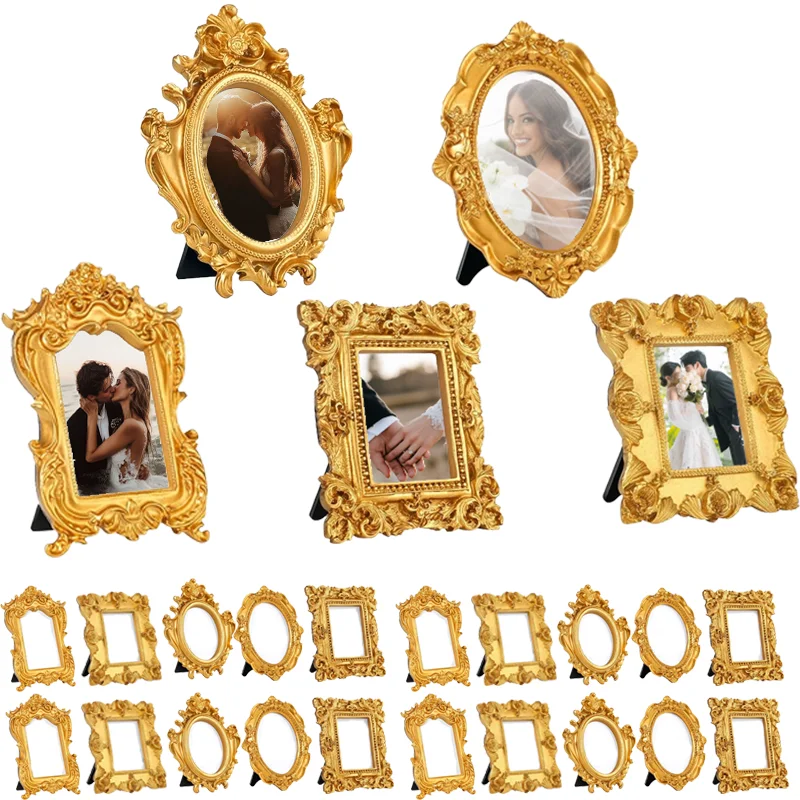 5-25pcs Mini Gold Frames for Wedding Table Decor Resin Vintage Picture Frames for Christmas Party DI...