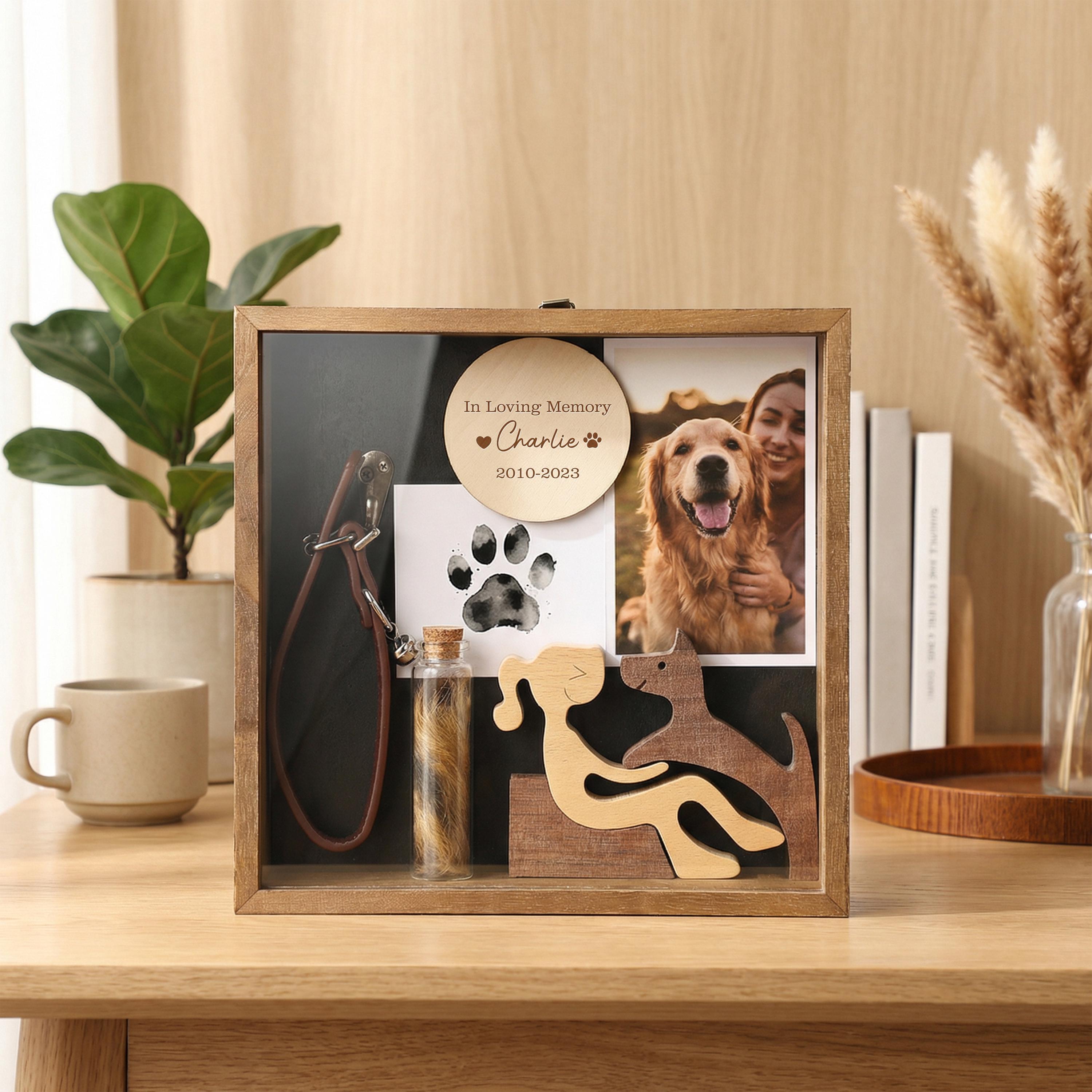 "Pet Shadow Memorial Gift Box with Collar Hook, Picture Frame Keepsake, Bottle for Pet Fur, Pet...