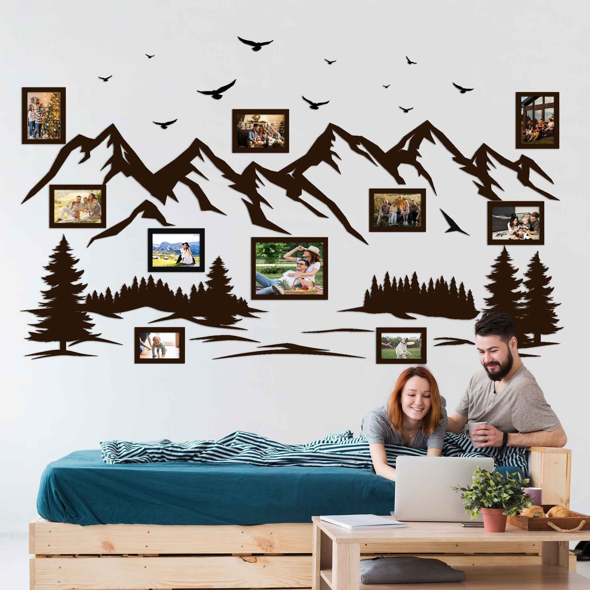 Mountain Wall Art, Wooden Photo Frames Set, Trendy Large Wood Wall ...