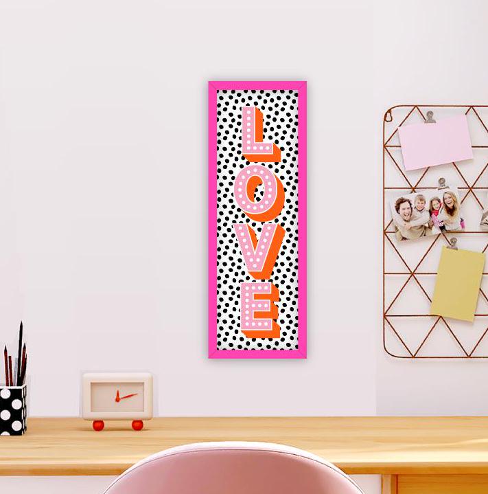 Framed Love Print, Love Print in Neon Pink Frame, Vertical Love Pri...