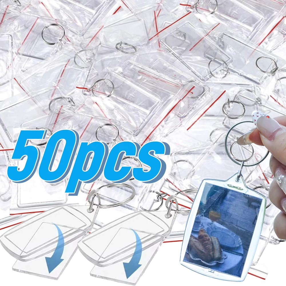 50/1pcs Transparent Rectangle Blank Acrylic Insert Keychain Photo Picture Frame Keyring Holder DIY S...
