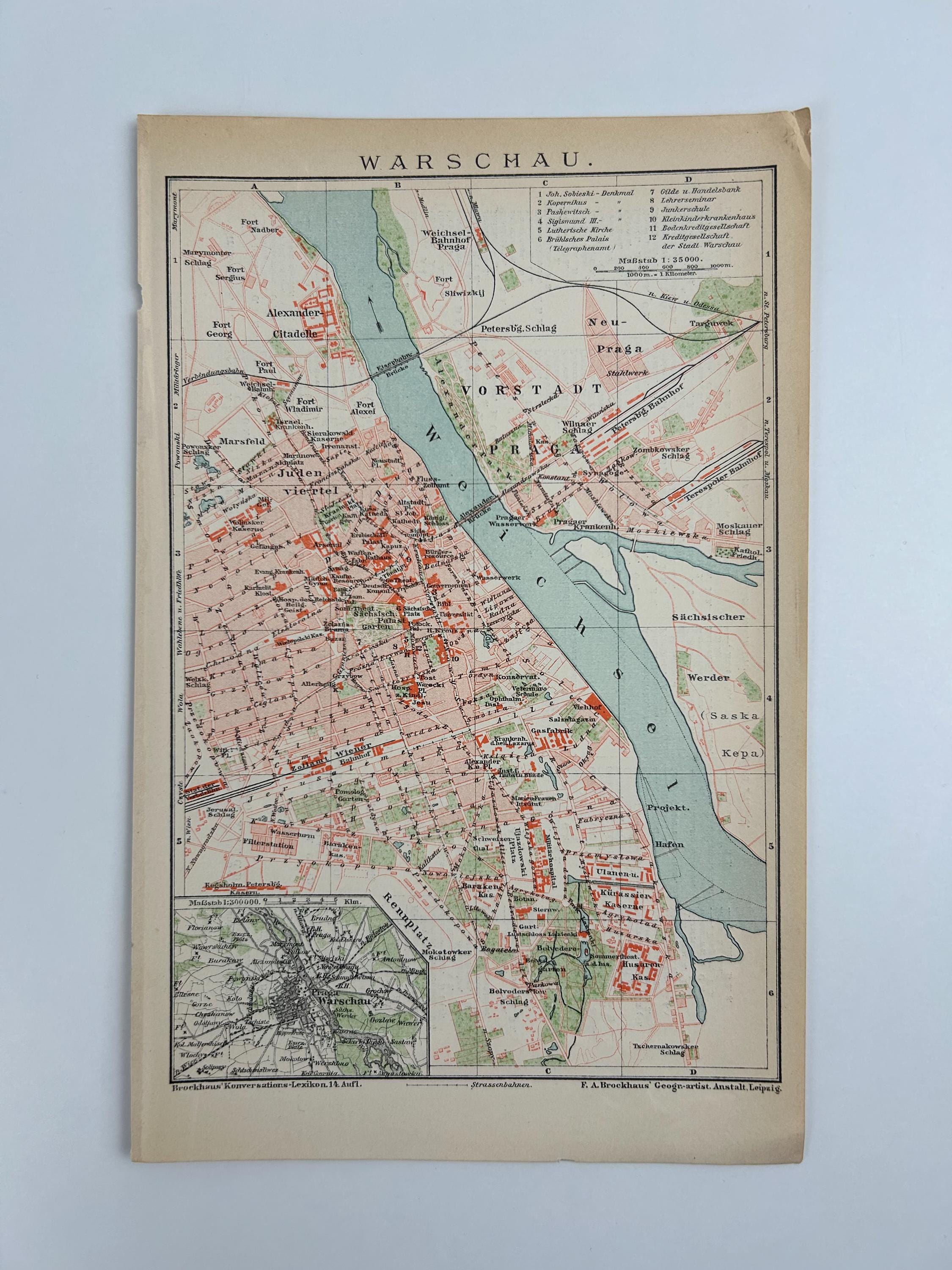 Vintage Warsaw city map | Antique map wall decor historical picture...