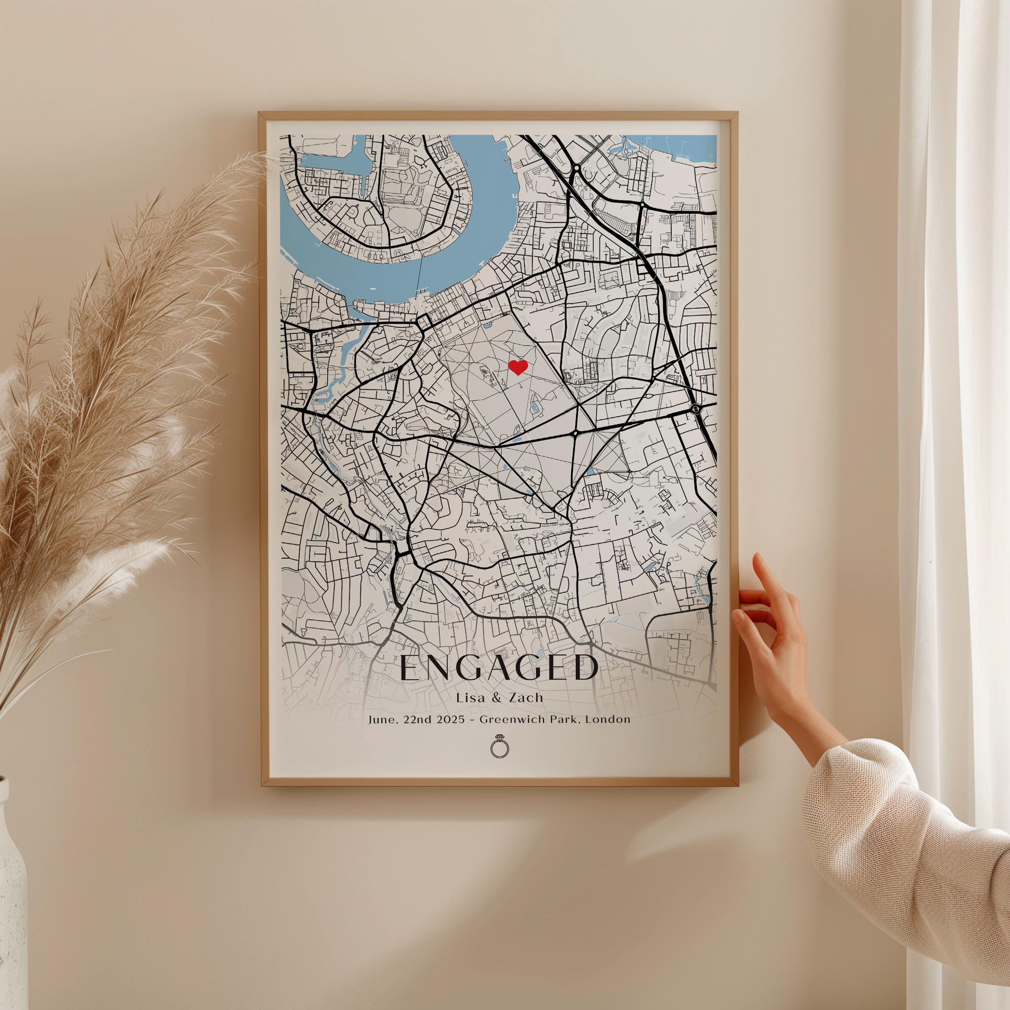 "Best Personalised Gift for Newly Engaged Couples - Engagement Gift Celebrate the place where y...
