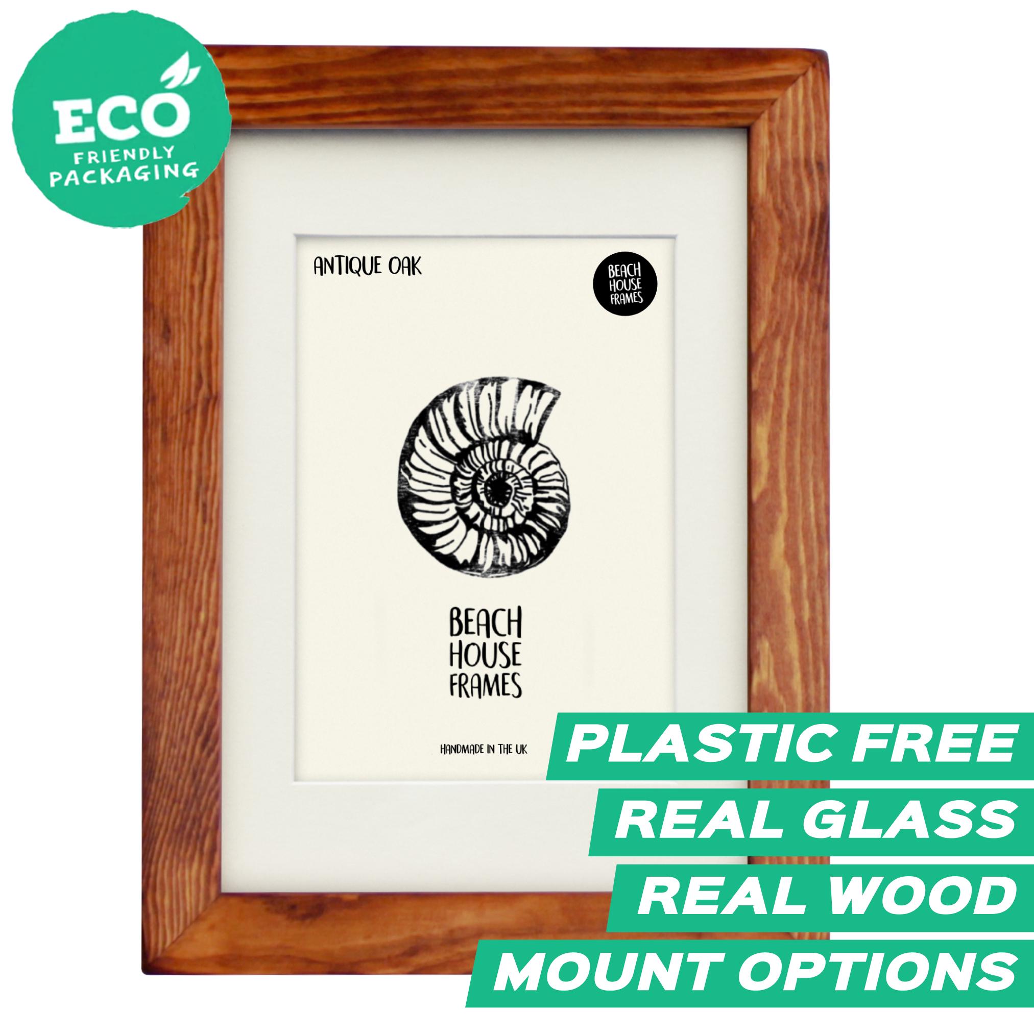 "All our picture frames include REAL GLASS and REAL SOLID WOOD (no MDF, no plastic, no veneers)...