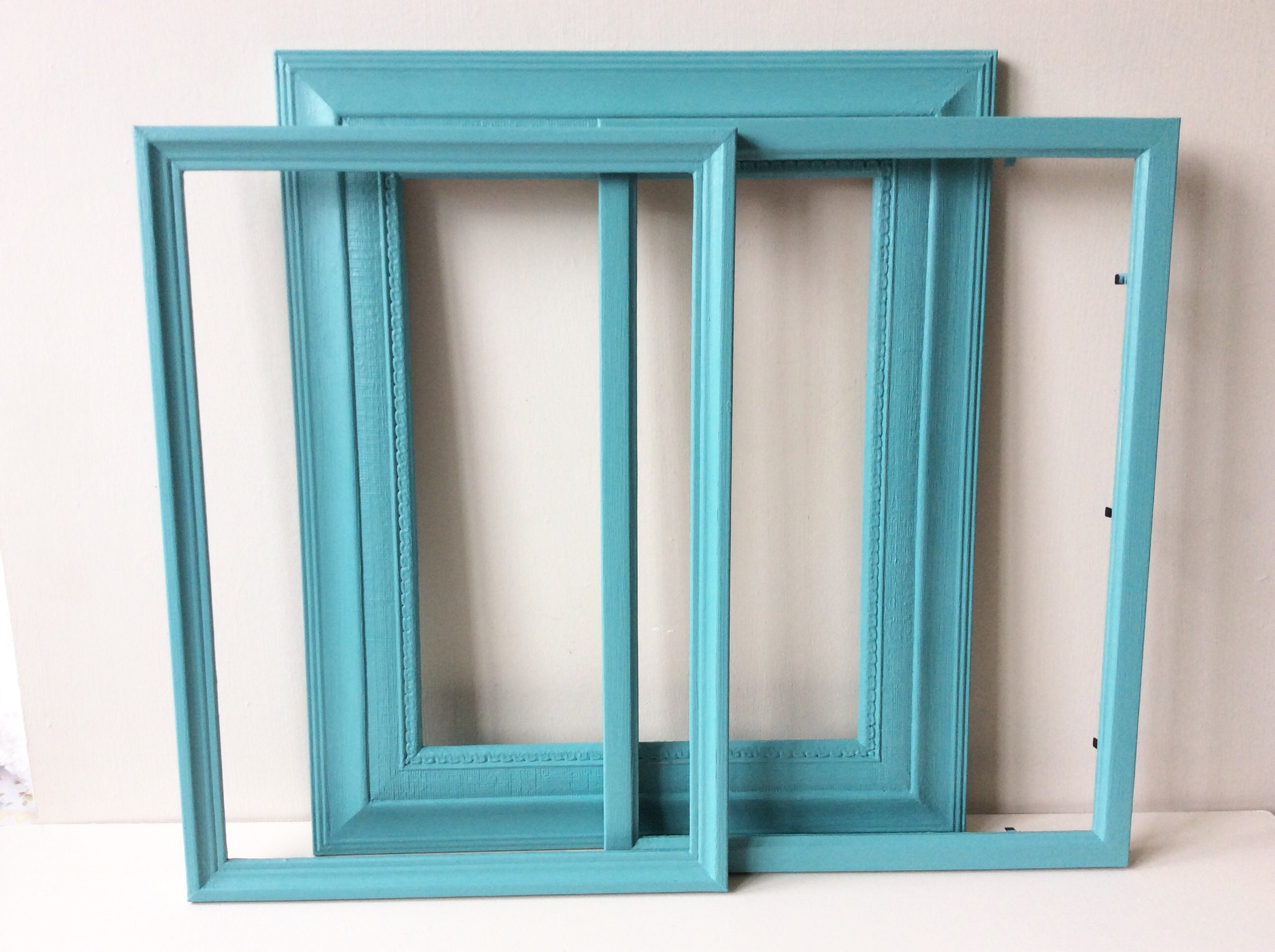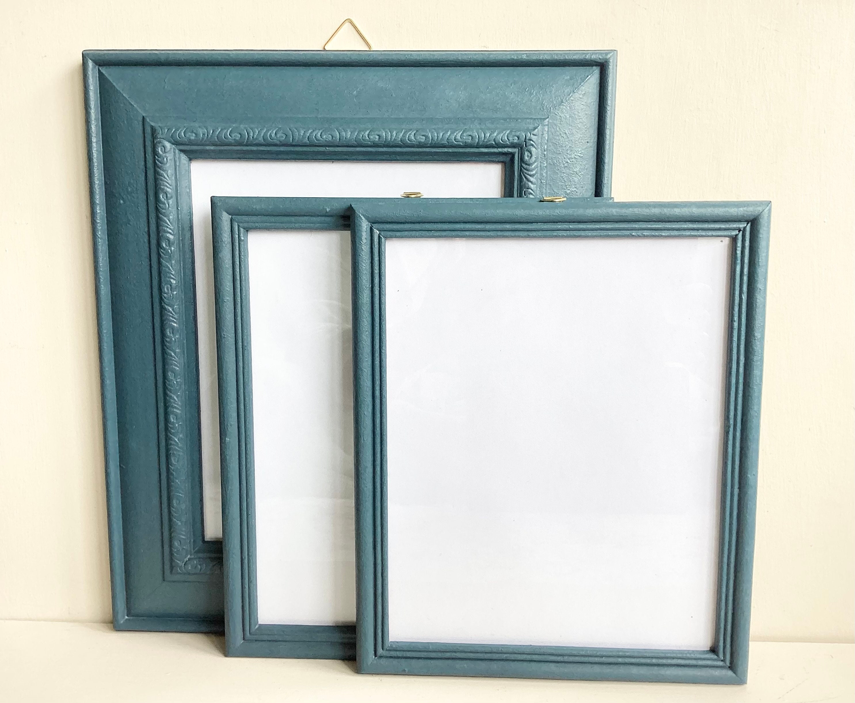"A set of 3 recycled frames painted with Annie Sloan Aubusson Blue. These smaller sets of large...