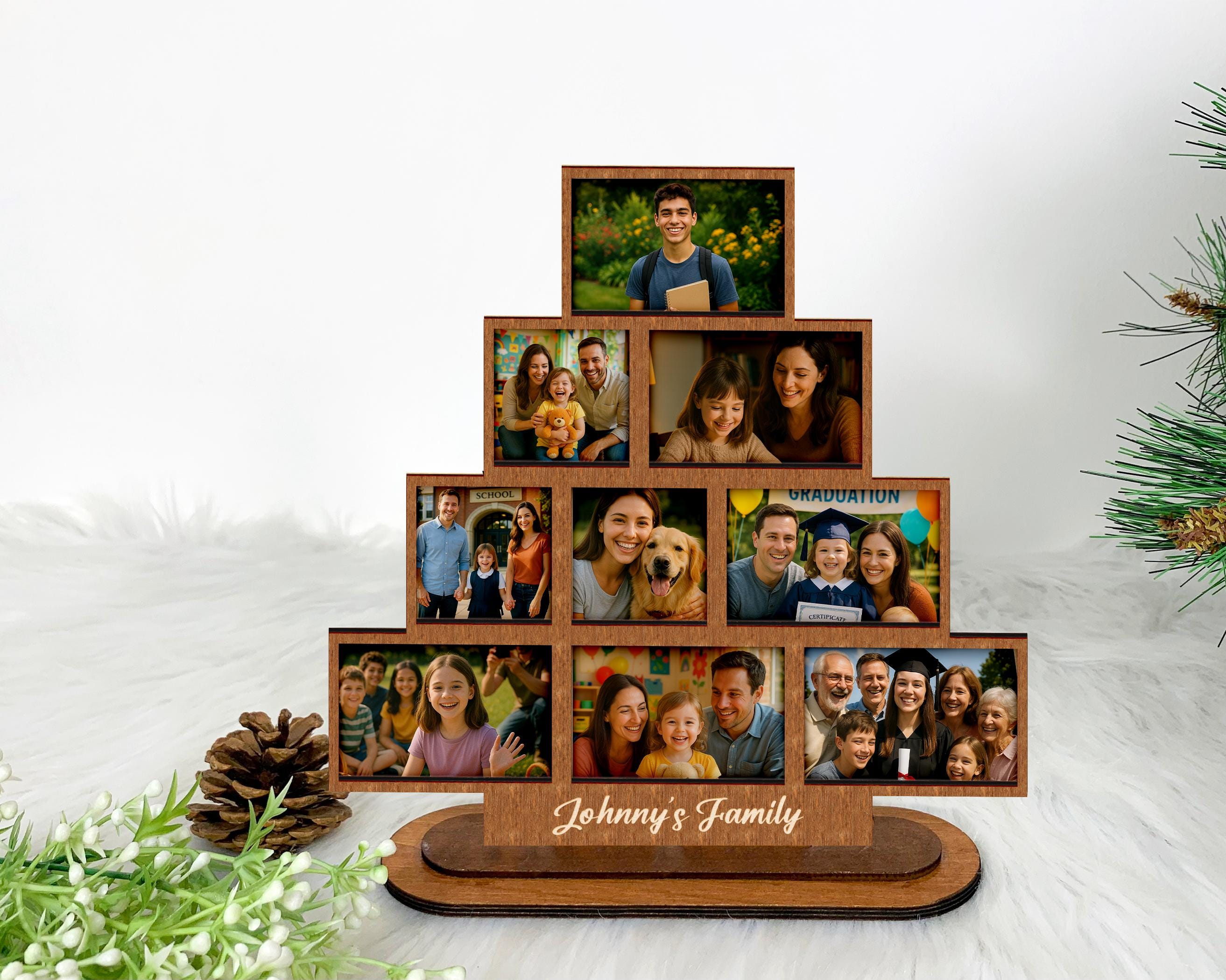 "Custom Wood Photo Collage Frame,Stackable Wood Photo Sign,Family Picture Frame,Family Christma...