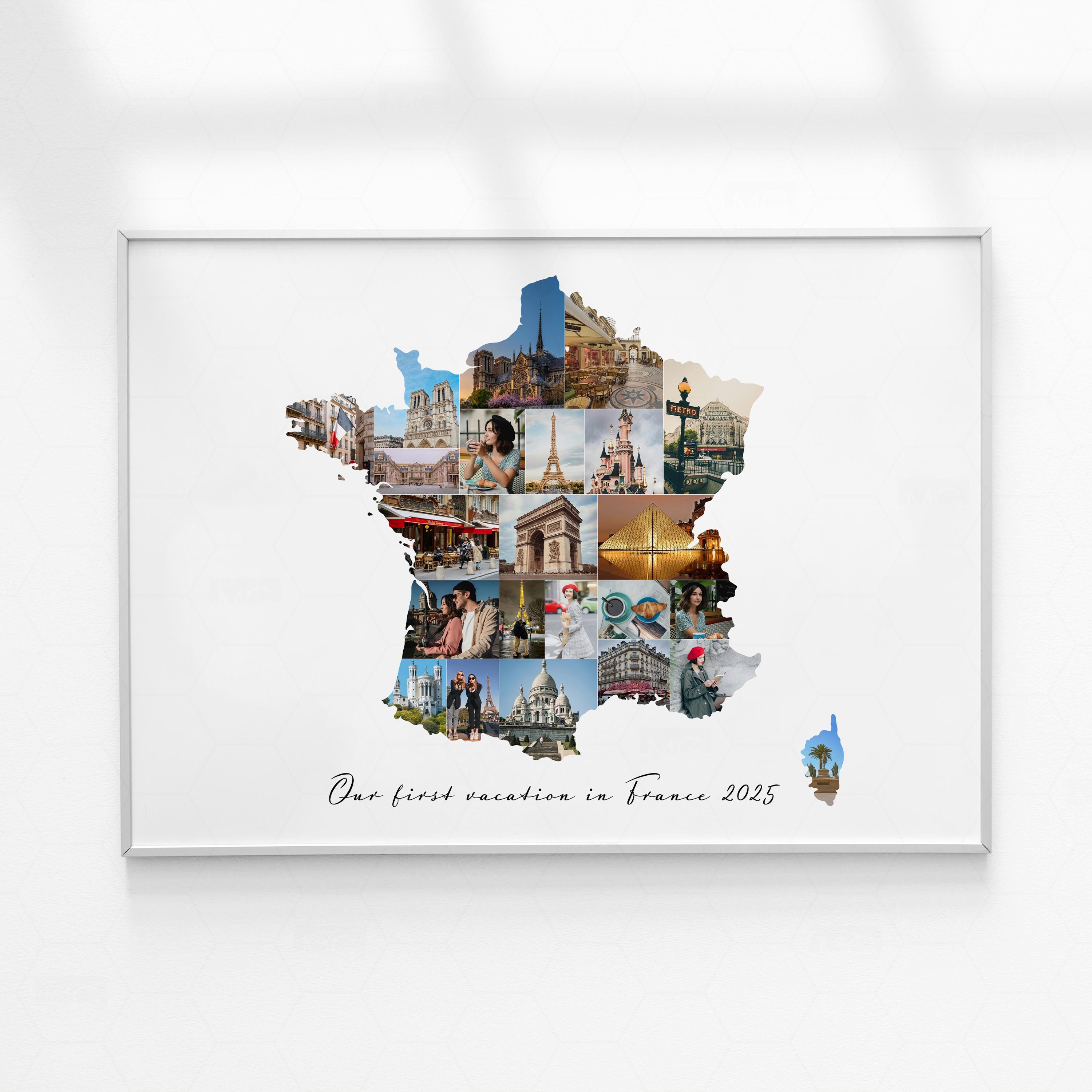 France Map Photo Collage Gift, Personalized Map Photo Gift, Custom ...