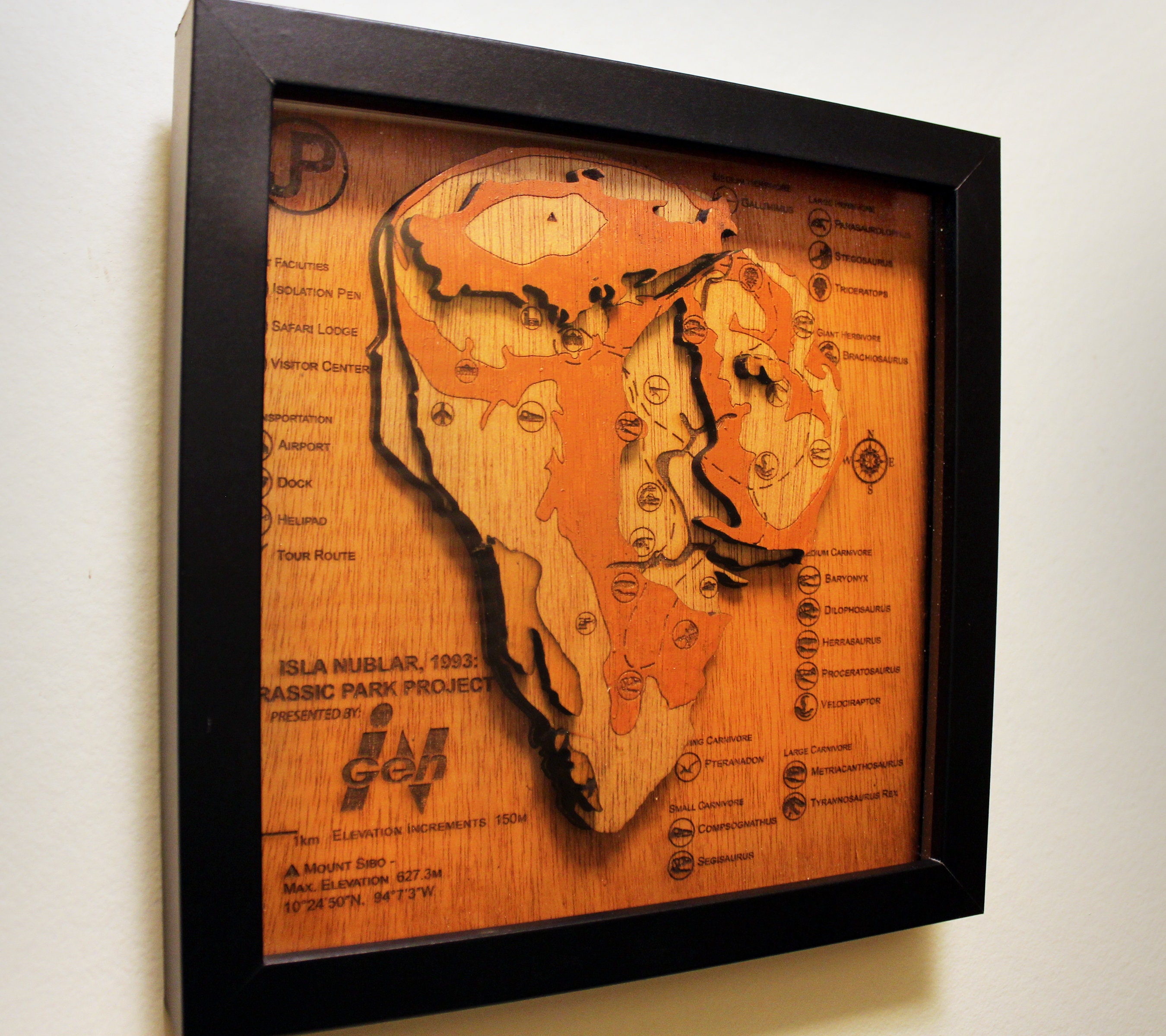 Jurassic Park - Isla Nublar - Wood Relief Carving - Shadow Box