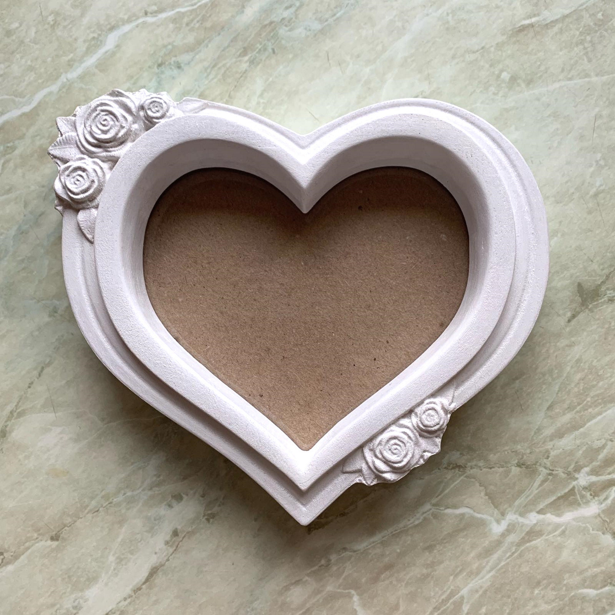 White Heart Shape Photo Picture Frame, Wood Carving, Love Romantic Family, Valentine Day, Home Decor...