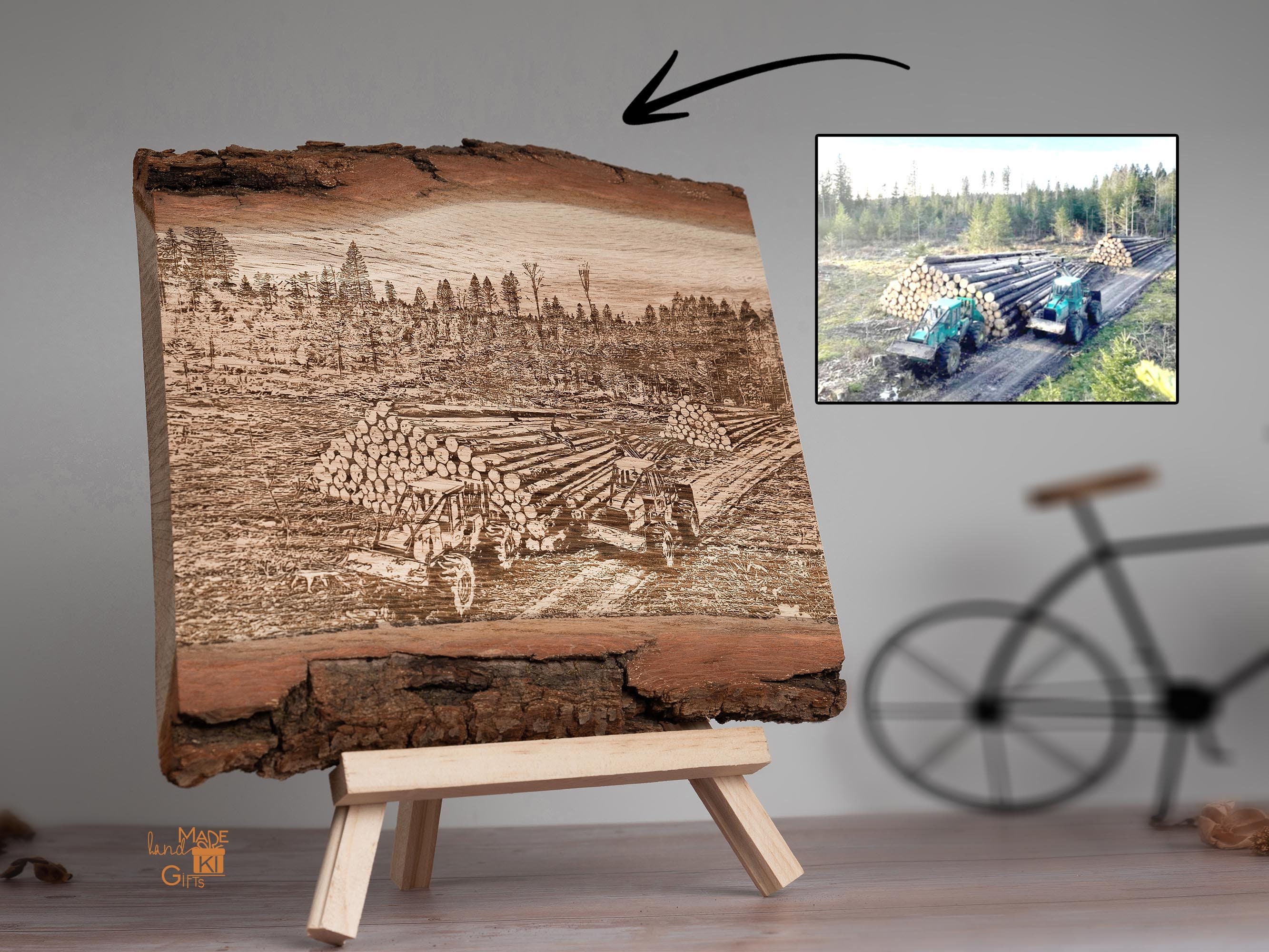 "Customize your favorite photo and have it burned onto wood with a live bark edge. The photo wi...