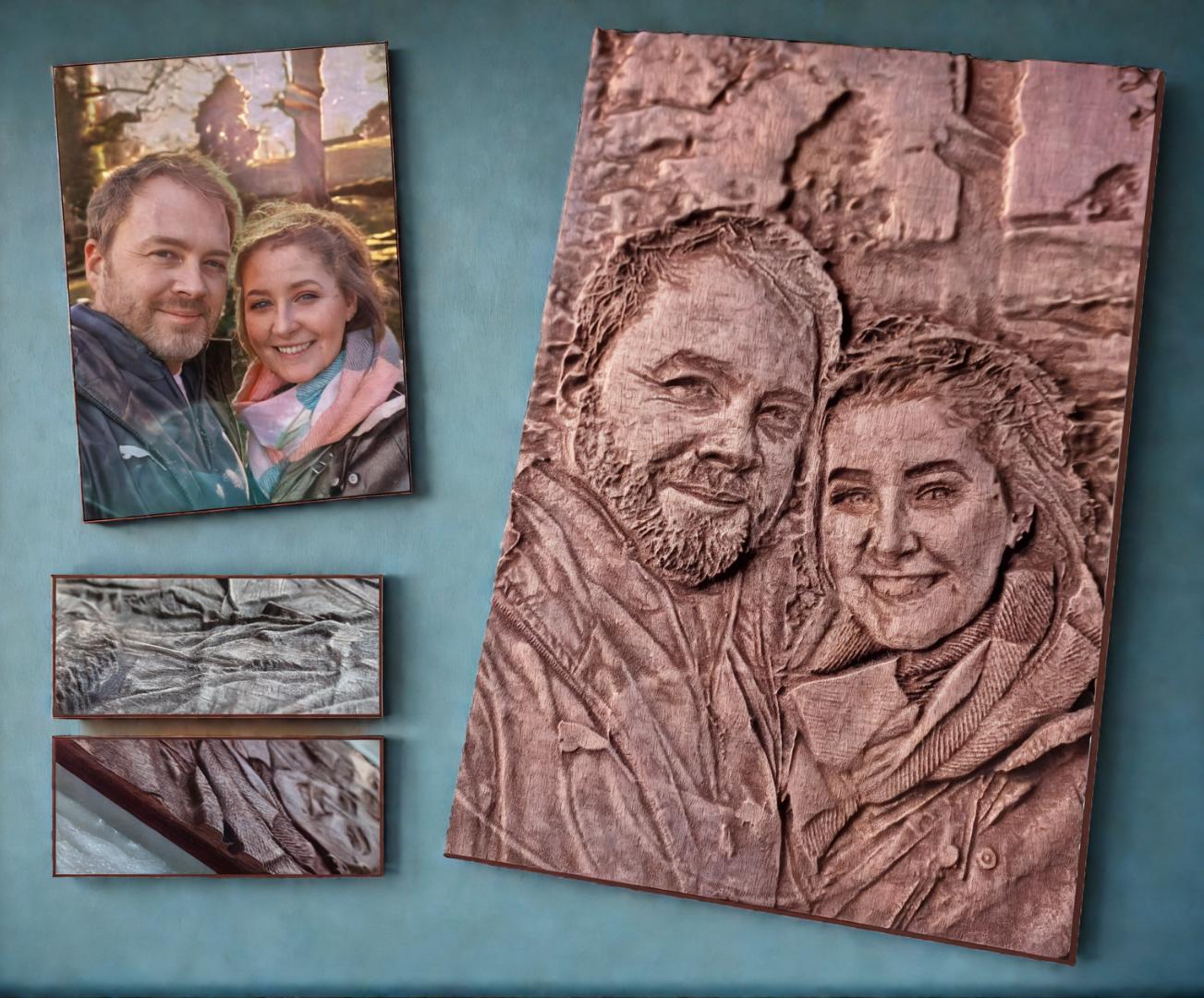 Personalized 3D Wood Carving Portrait: Custom Photo Relief Gift