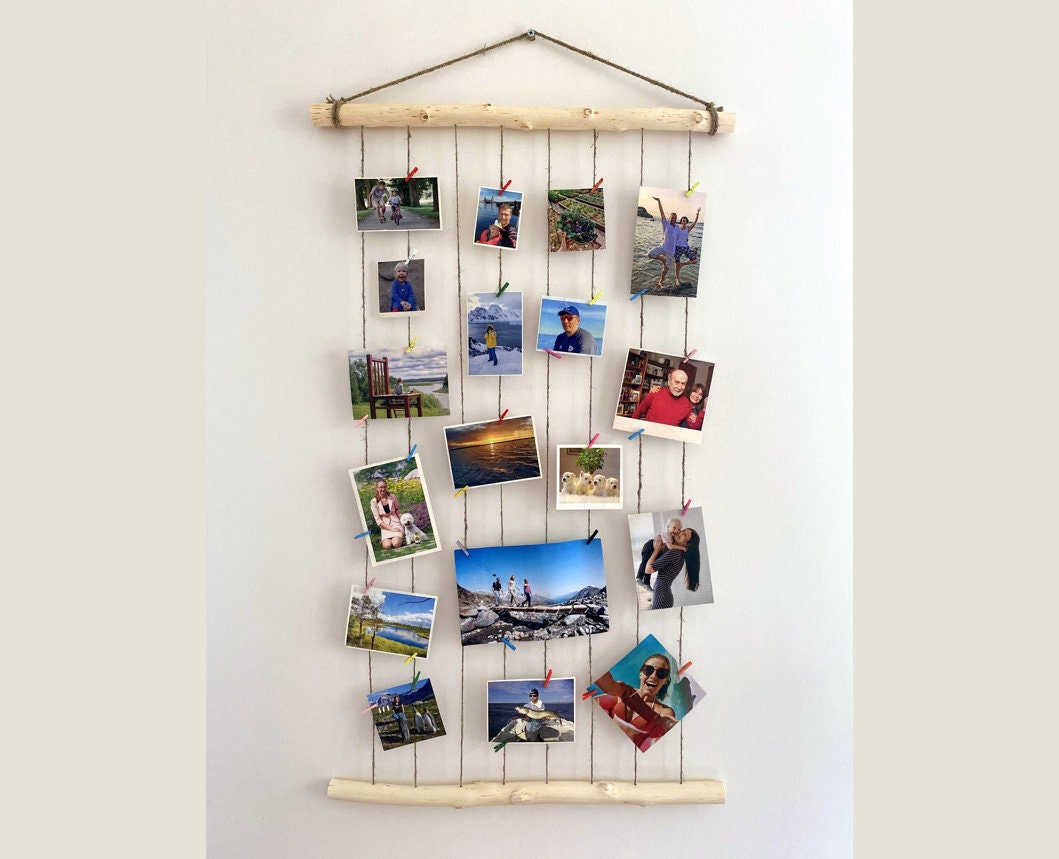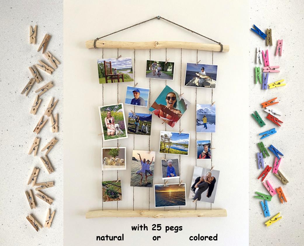 Large Twine Photo Display with Mini Pegs Natural Wood Photo Frame V...