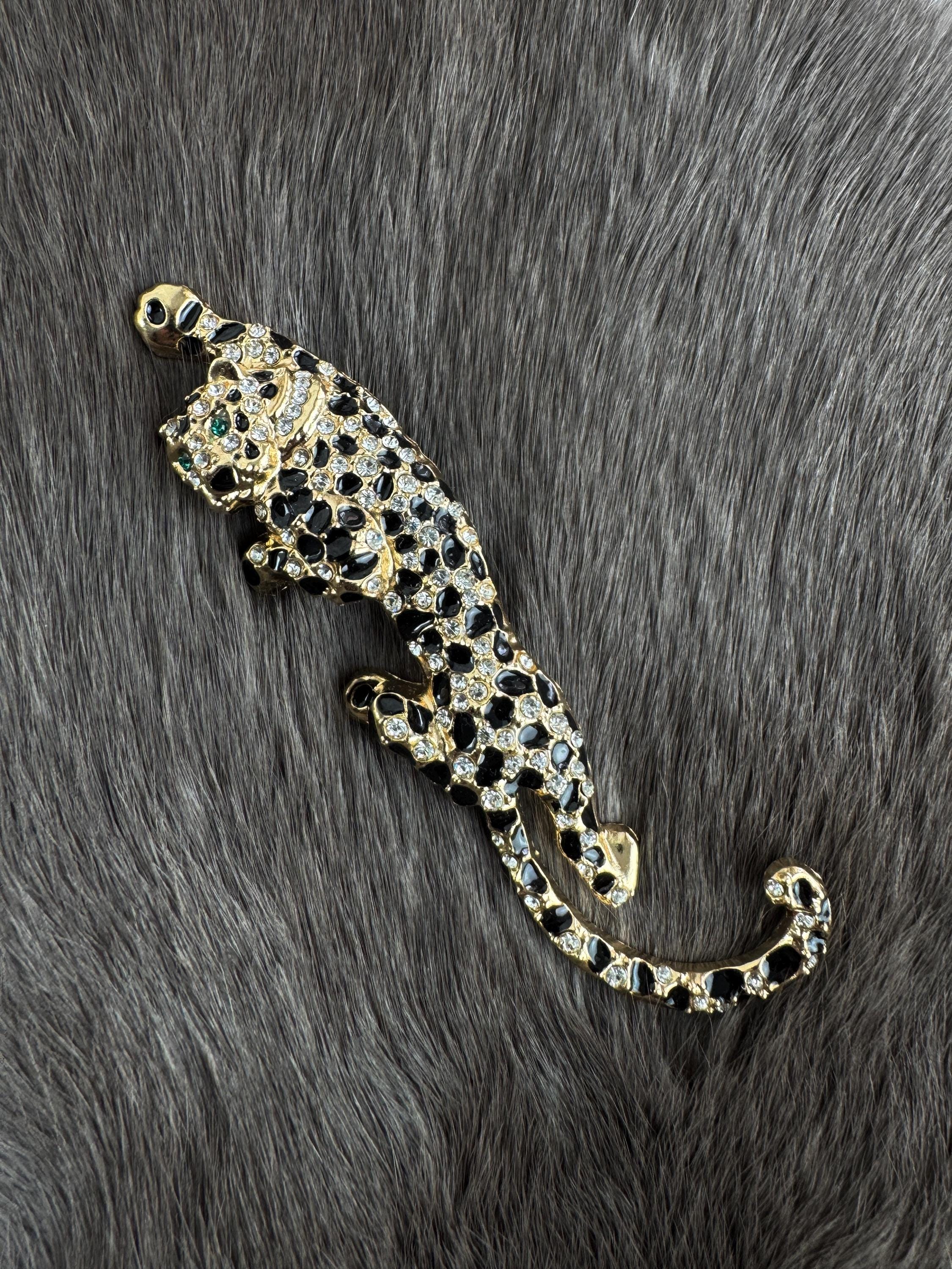 Luxury Panther Brooch, Crystal Leopard Gold Pin, Sparkly Jungle Cat...