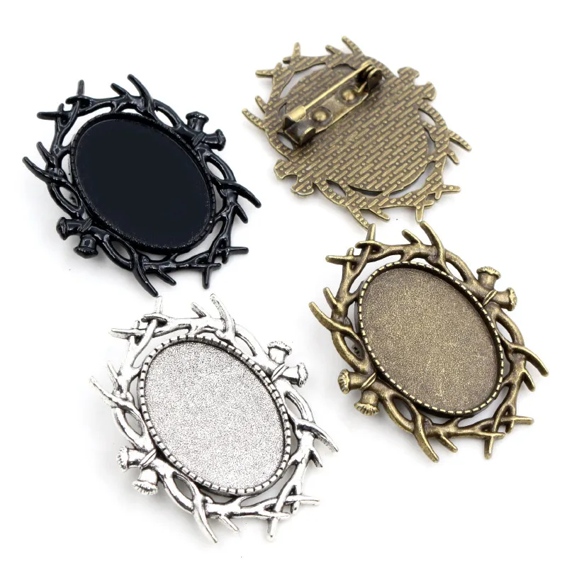 5pcs 18x25mm Inner Size Antique Silver Plated Black Bronze Brooch Pin Flower Cameo Cabochon Base Set...