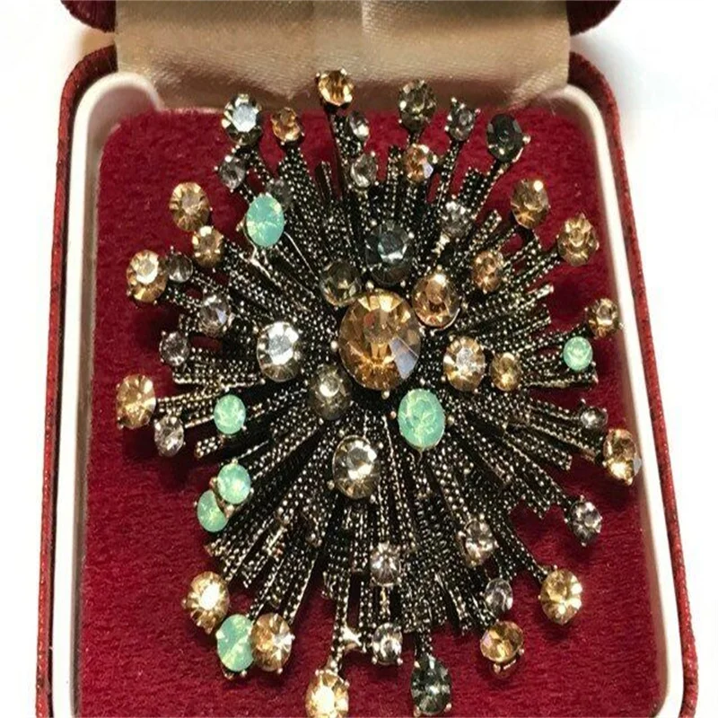 Retro Atomic Starburst Crystal Brooch Pin 1950s Vintage Style Jewel...
