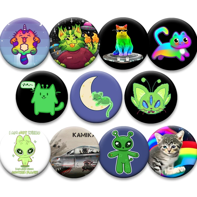 Round Enamel Pins Gnarp Gnarp Alíen Cats Brooches Cute Funny Rainbow Alien Cat Cartoon Badge ...