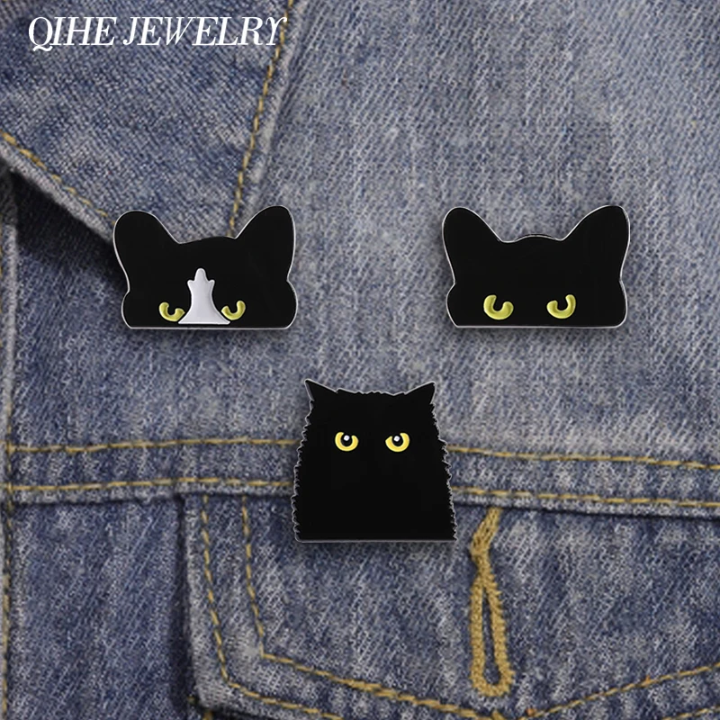 Cartoon Cute Black Peeping Cat Enamel Pins Custom Big Eyes Sneaky Cat Brooches Backpack Lapel Badge ...