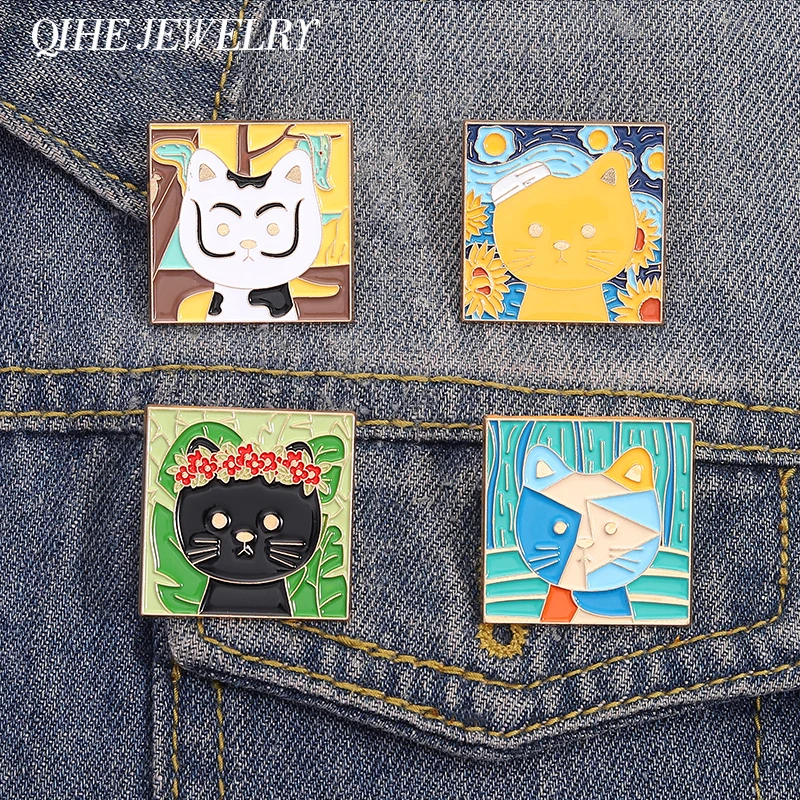 Cute Cat Oil Printings Art Enamel Pins Cartoon Animal Cat Sunflower...