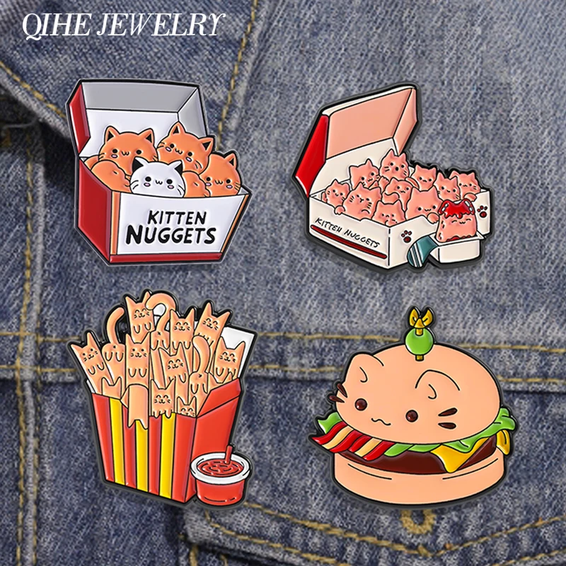 Cute Burger Cat French Fries Cat Brooch Enamel Pins Kitten Nuggets ...