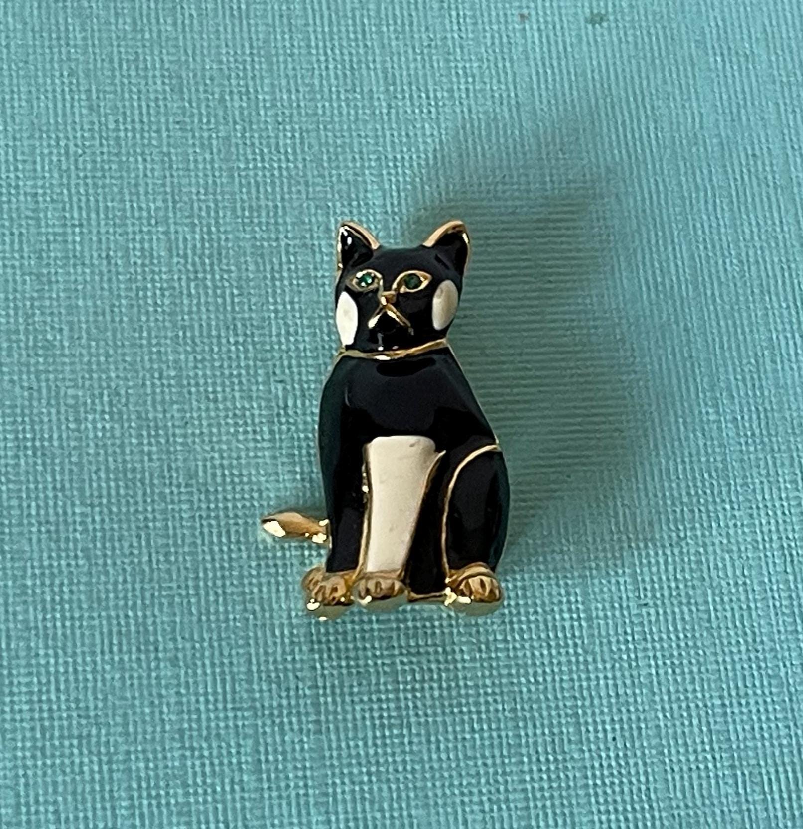 Vintage cat brooch, green eye cat pin, cat jewelry, cat pin vintage...