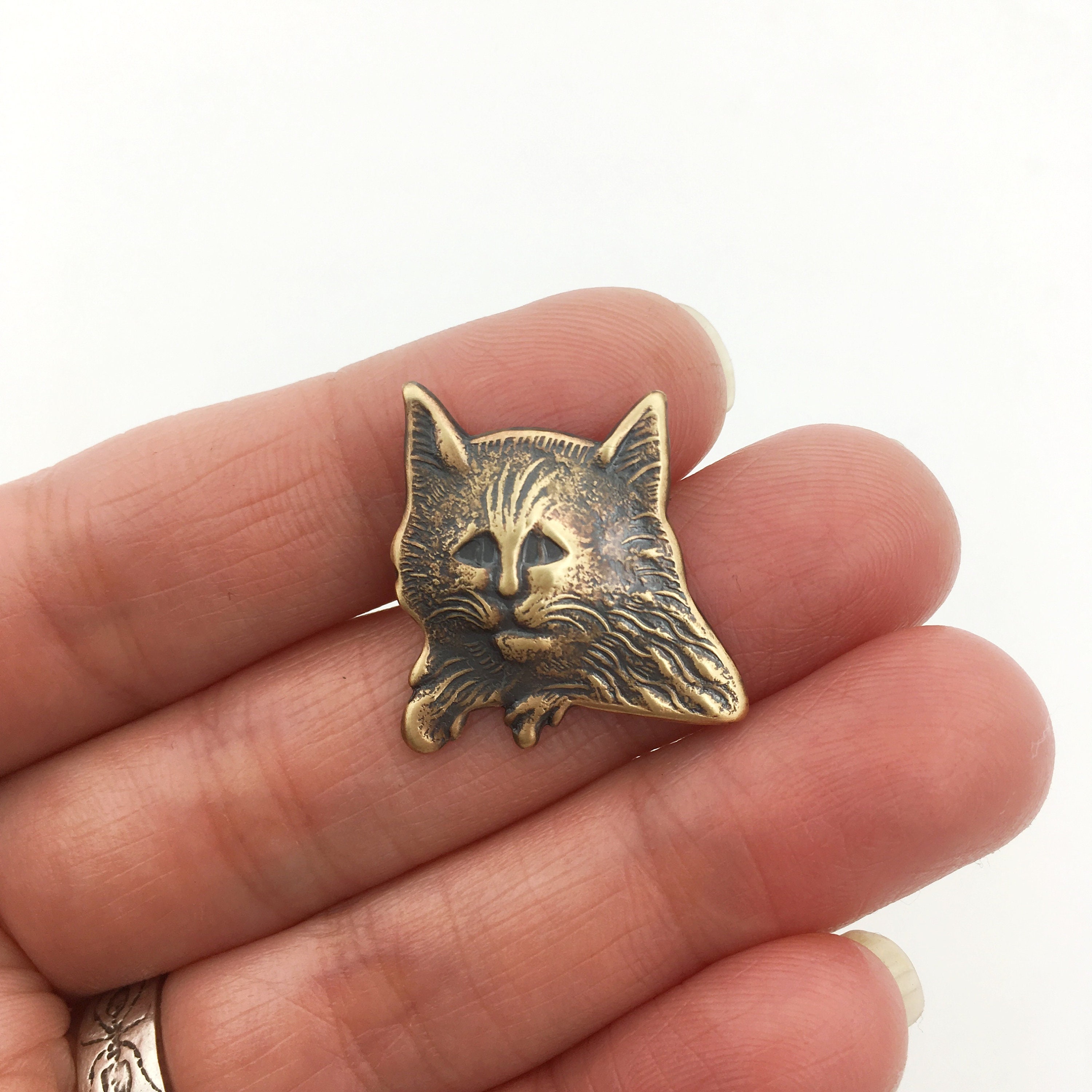 "This brass cat pin is manufactured, hand assembled and hand finished in the USA! The cat itsel...