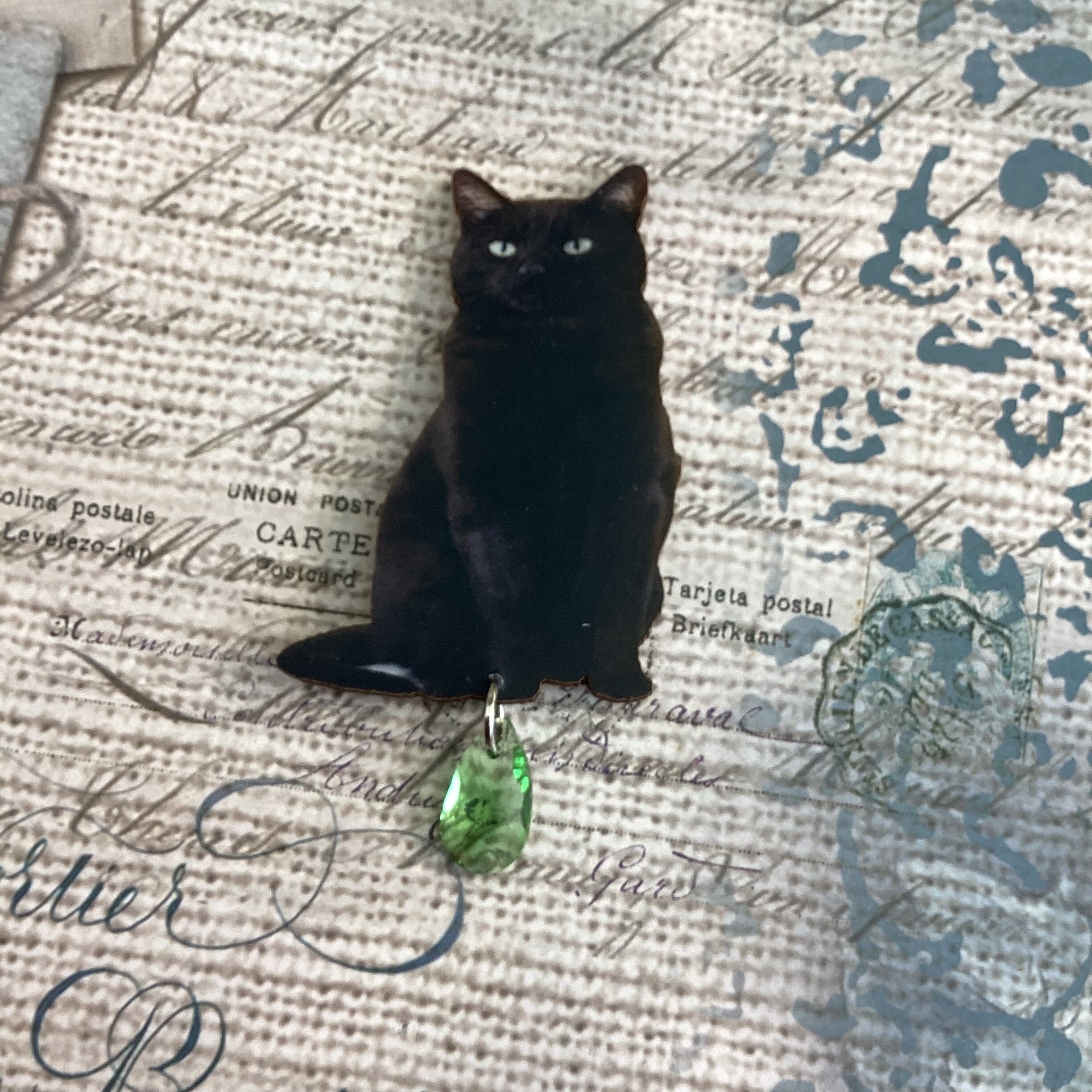 Beautiful Black Cat Brooch. Gorgeous Black Cat Brooch made from Laser Cut Wood ,sealed image, hangin...