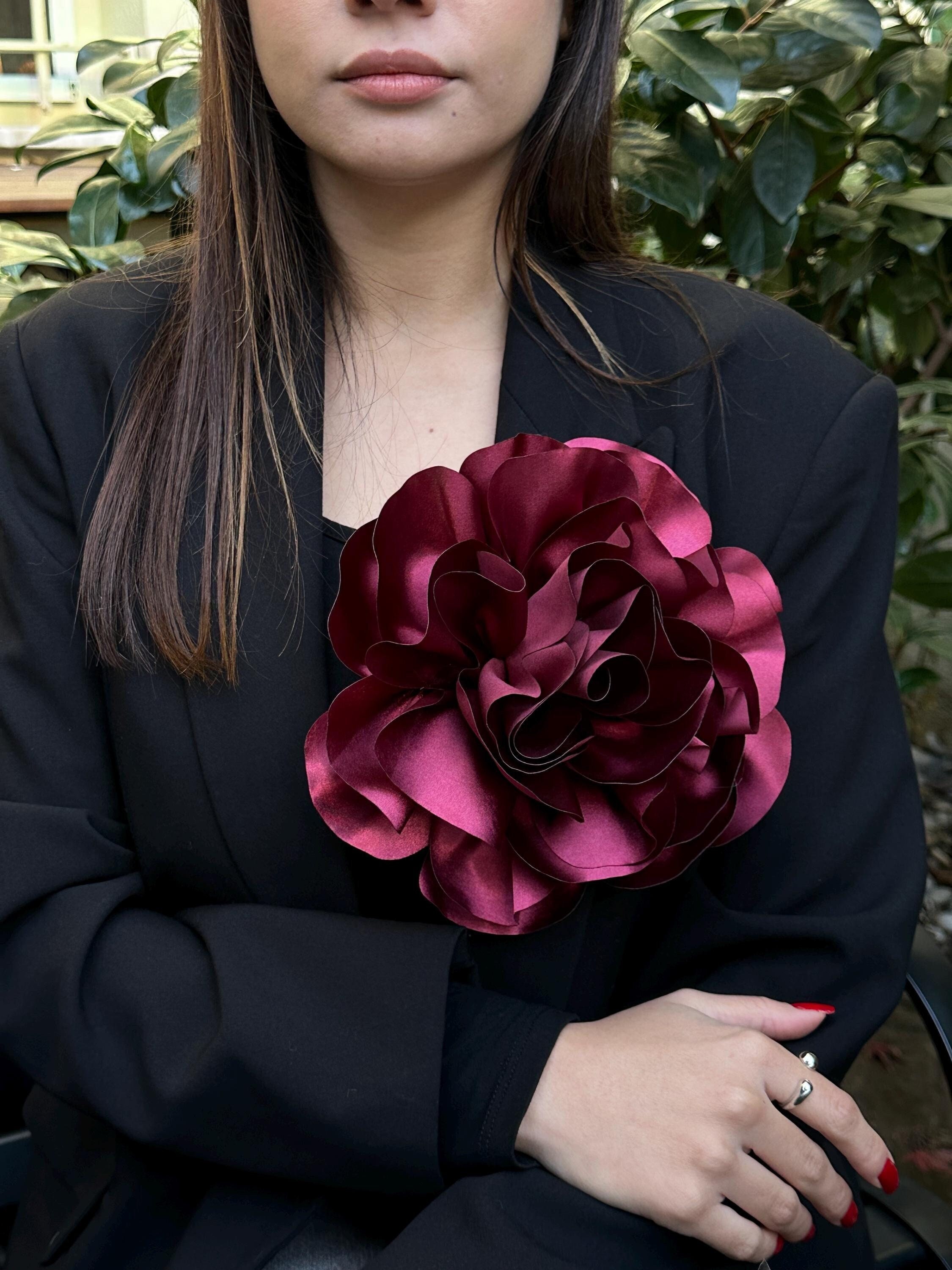 Large Handmade Satin Rose Brooch - A Symbol of Elegance and Sophistication With 5 color options; -Bu...