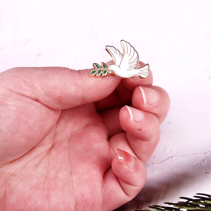 Peace Dove Olive Branch Enamel Pin Animal Metal Badge