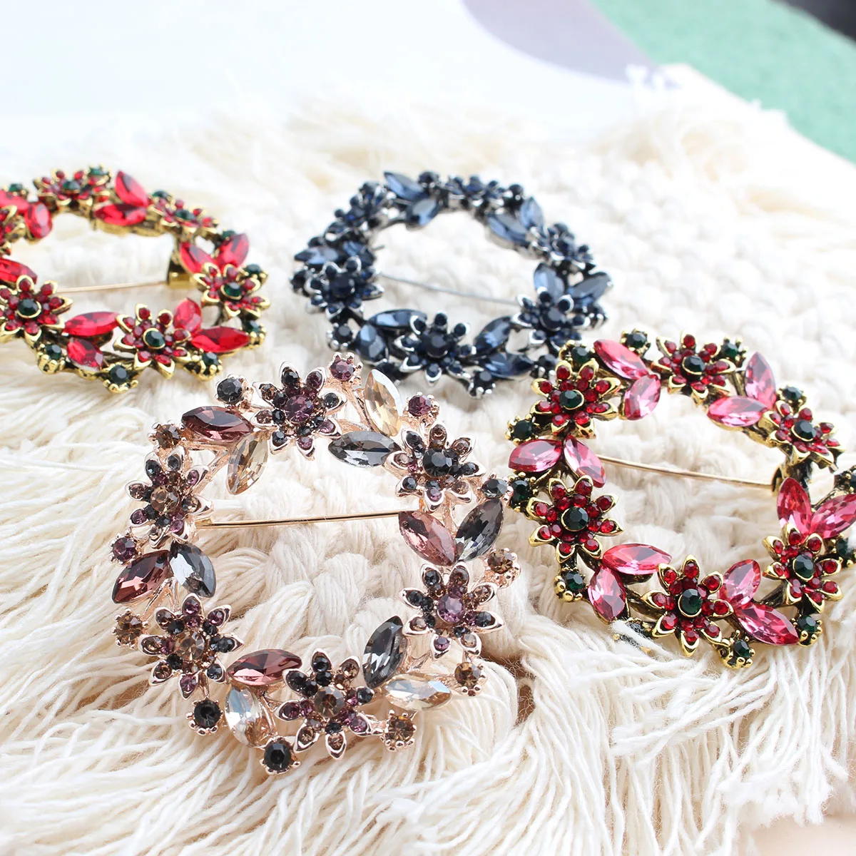 Rhinestone Olive Branch Wreath Brooches for Women Unisex Pearl Roun...