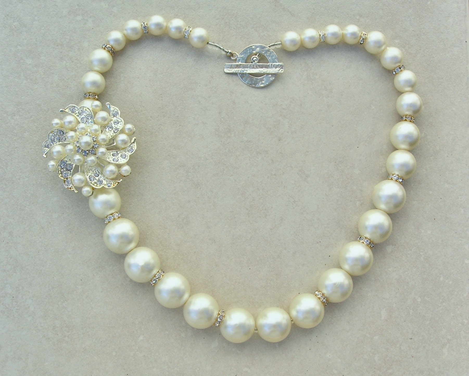Swarovski White Pearls Vintage Pin, Pearls Rhinestone Beads, Statem...