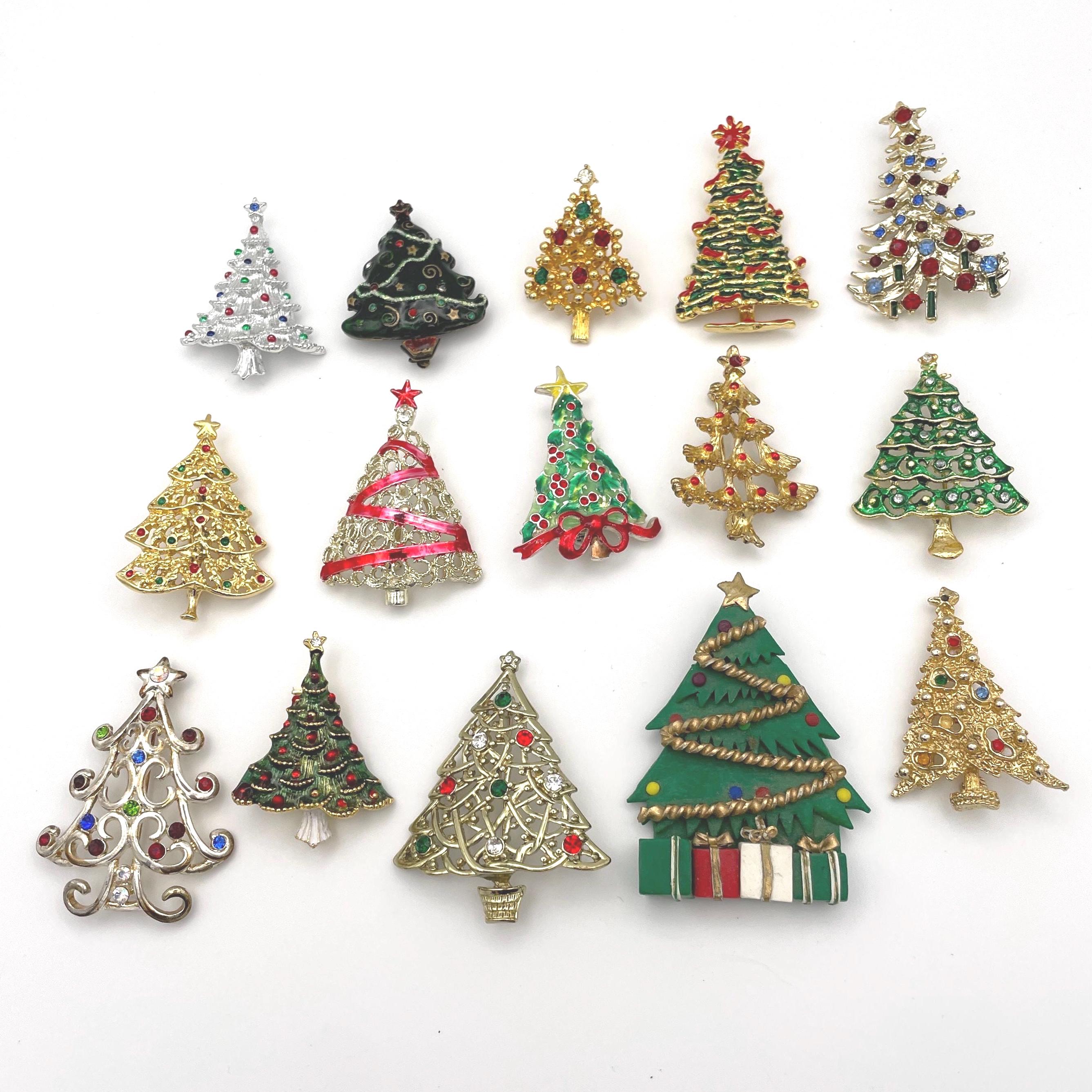 Christmas Tree Brooch Vintage Brooch Lapel pin Gold tone Silver ton...