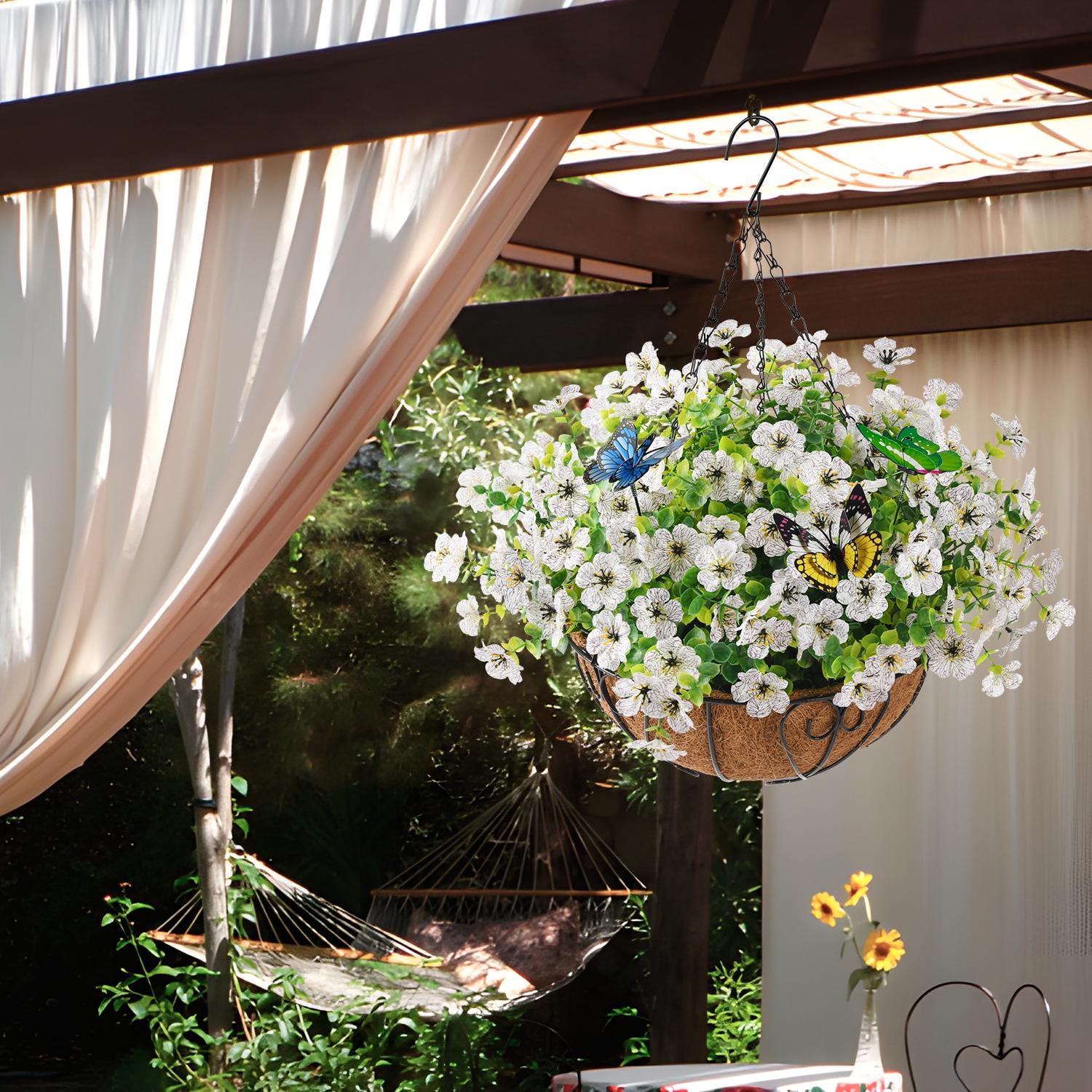 Pink White Blue Artificial Flower Hanging Basket Faux Flowers baske...