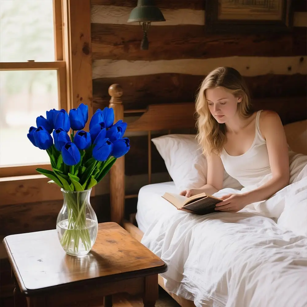 10 Pcs Blue Artificial Flowers Tulips Fake Flowers Real Touch Tulip...