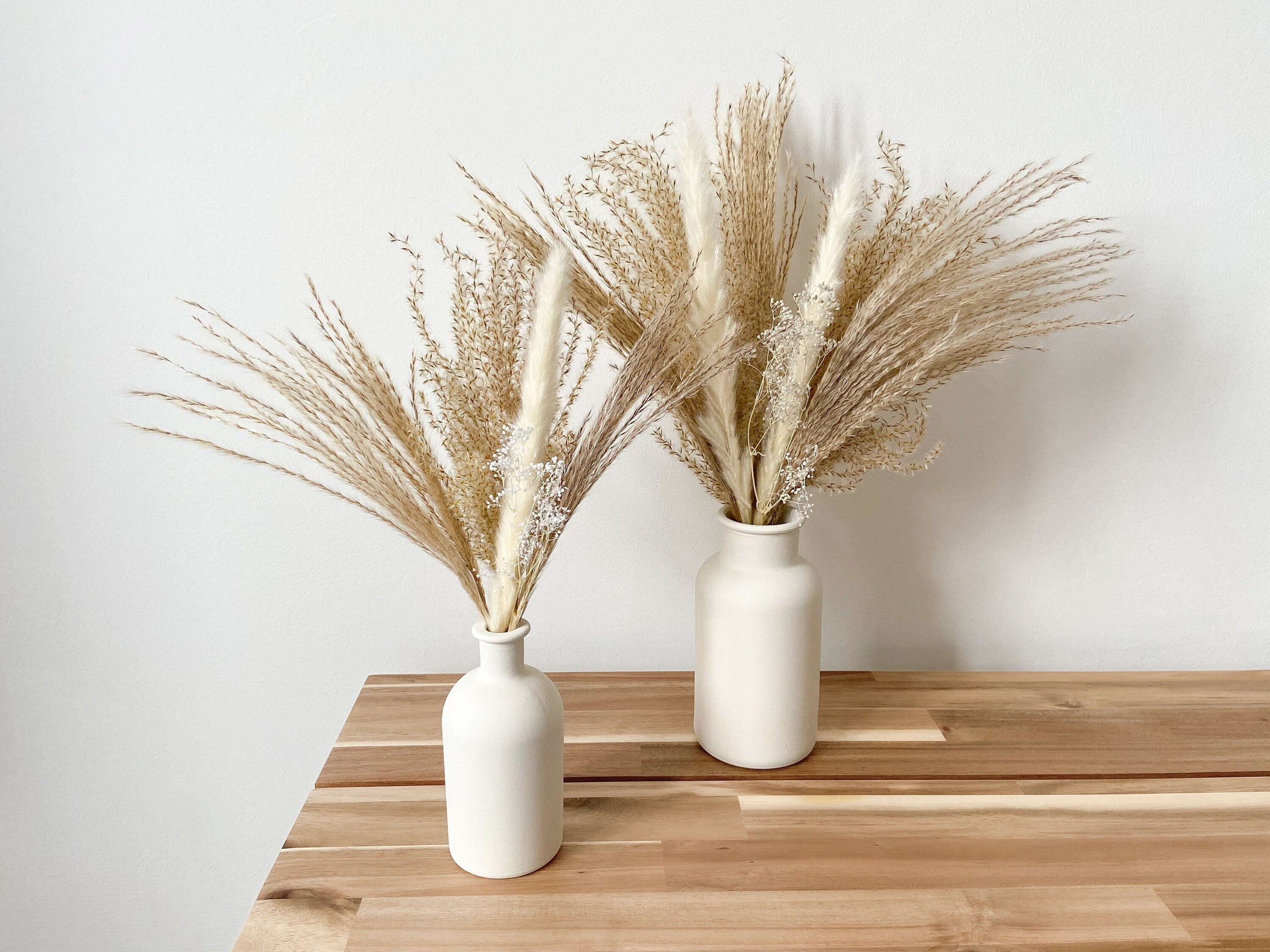 Two different sized pampas grass bouquets with an option to add an hand painted beige vase to match ...