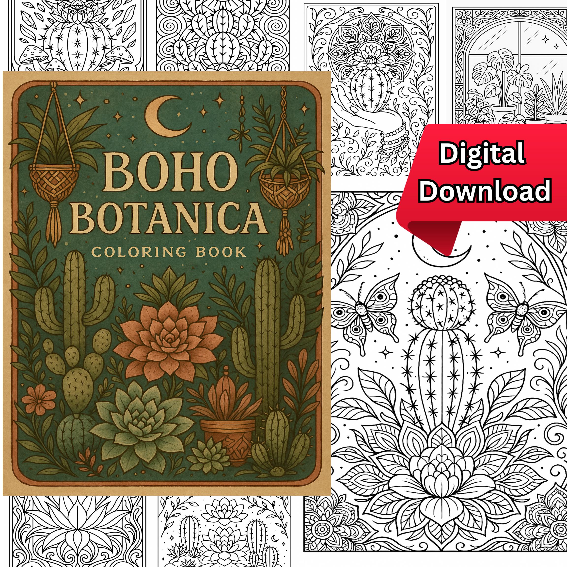 Boho Botanica Coloring Book - Succulents, Houseplants (Digital Down...