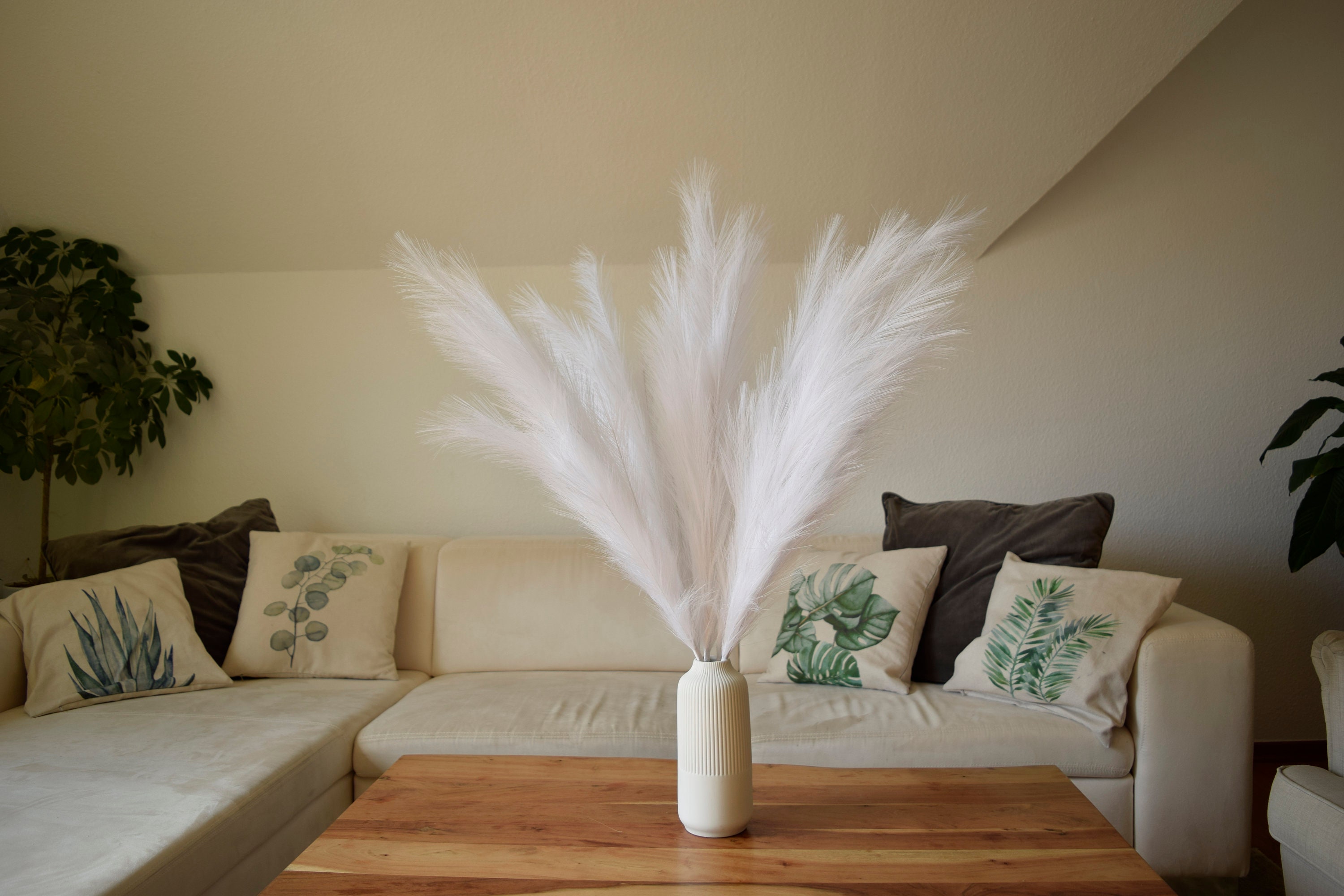 Natural look: This artificial pampas grass in brilliant white blends seamlessly into any room decor ...