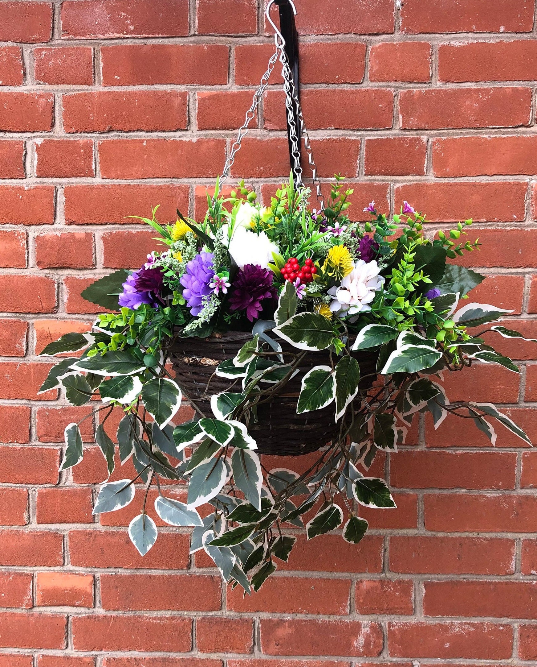 Bright artificial hanging basket, no maintenance outdoor plants/bas...