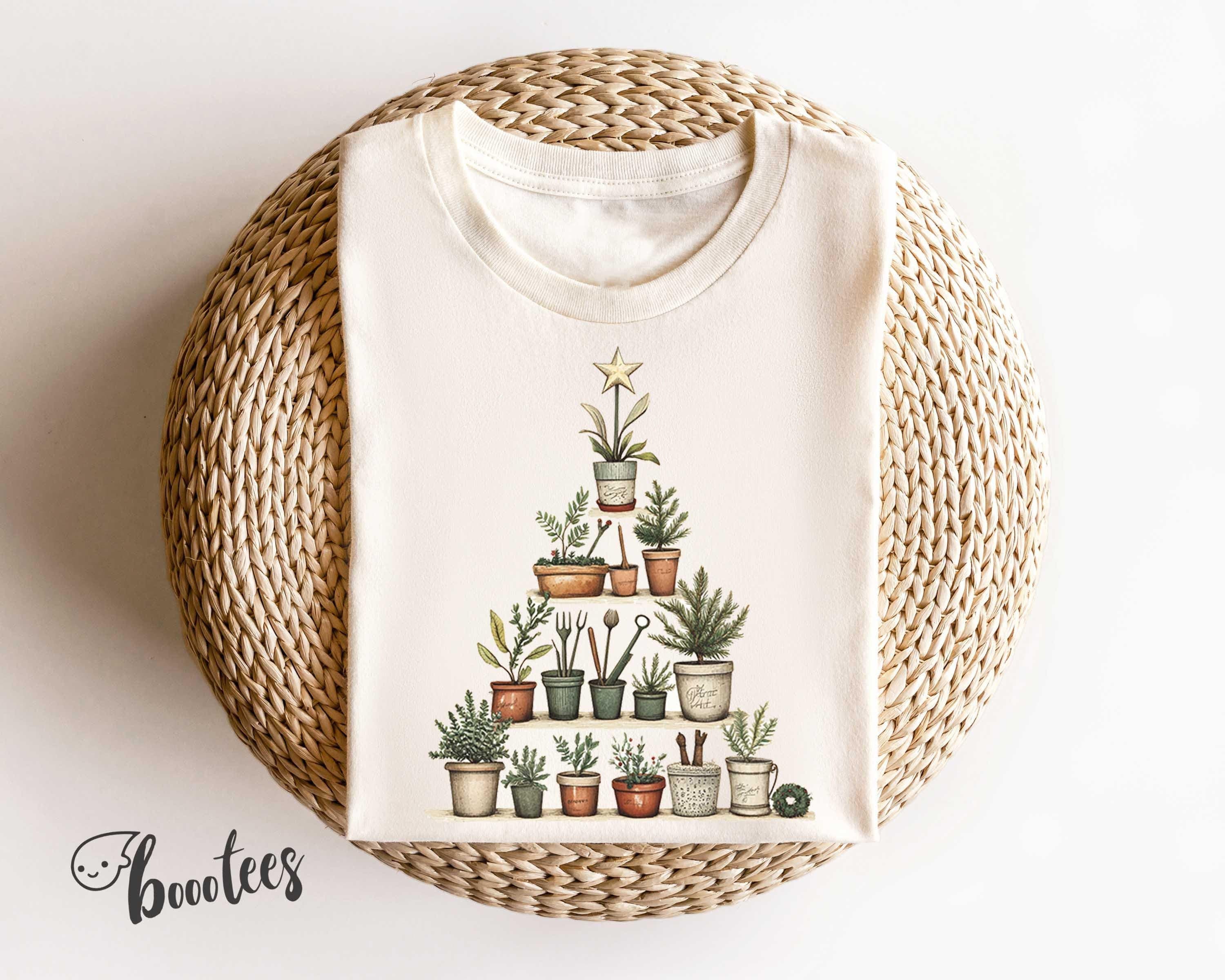 House Plant Christmas Tree T-Shirt: Retro Gardener X-mas Tee Plants...