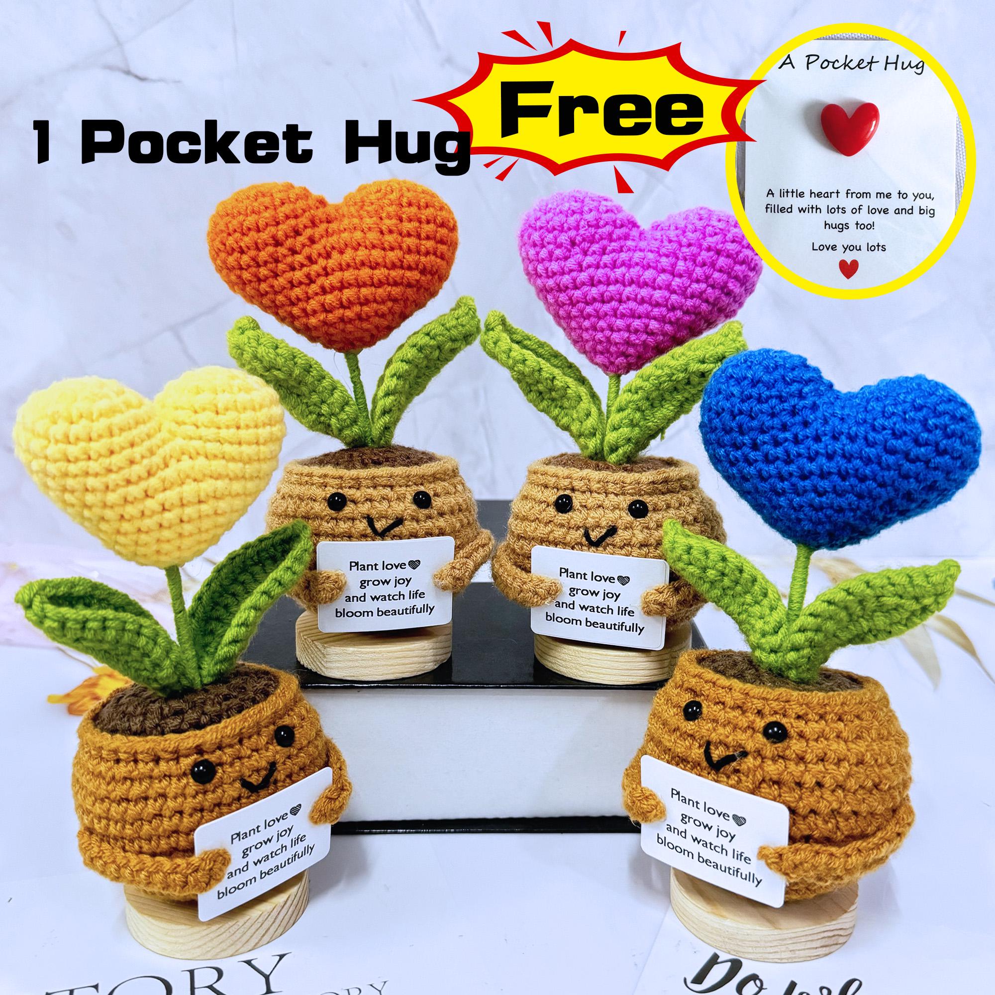 Adorable Handmade Crochet Heart-shaped Flower Pot Plants,Valentine'...