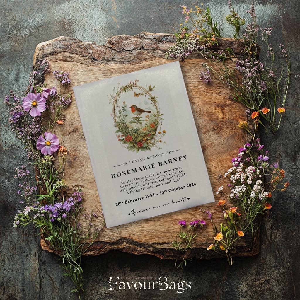 Honor a loved one's memory with personalised wildflower seed packets, thoughtfully designed as keeps...